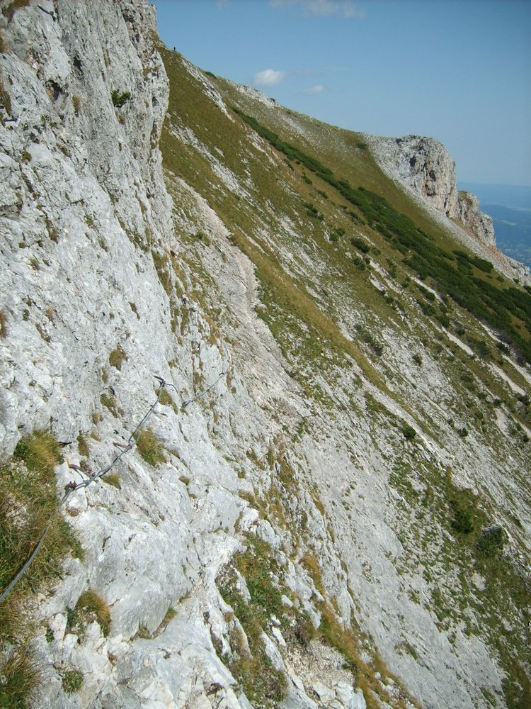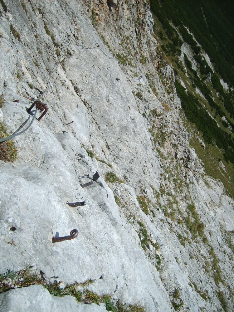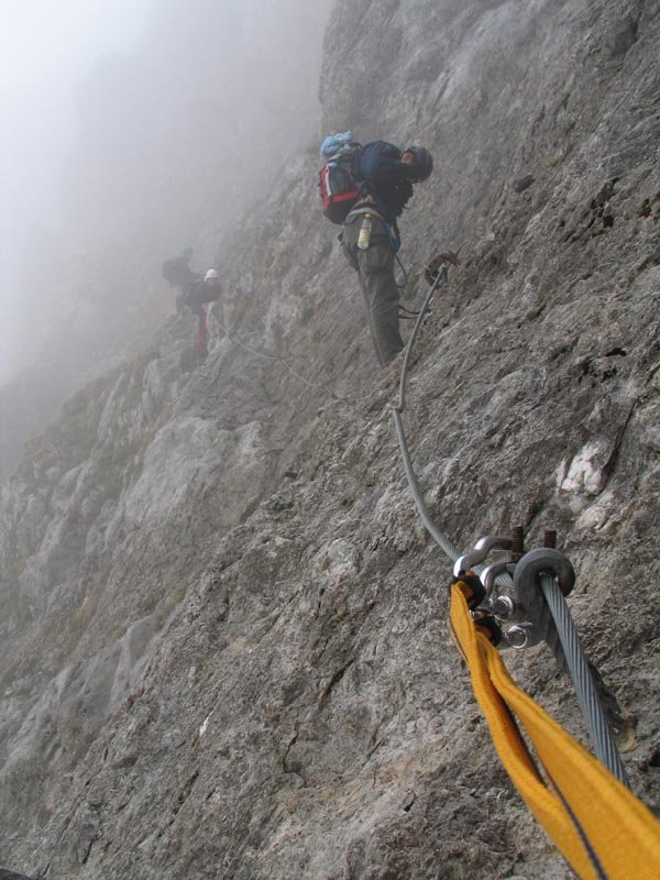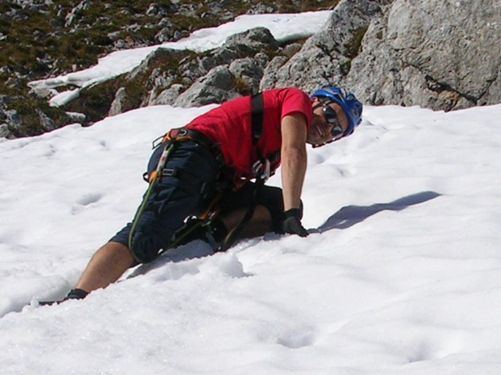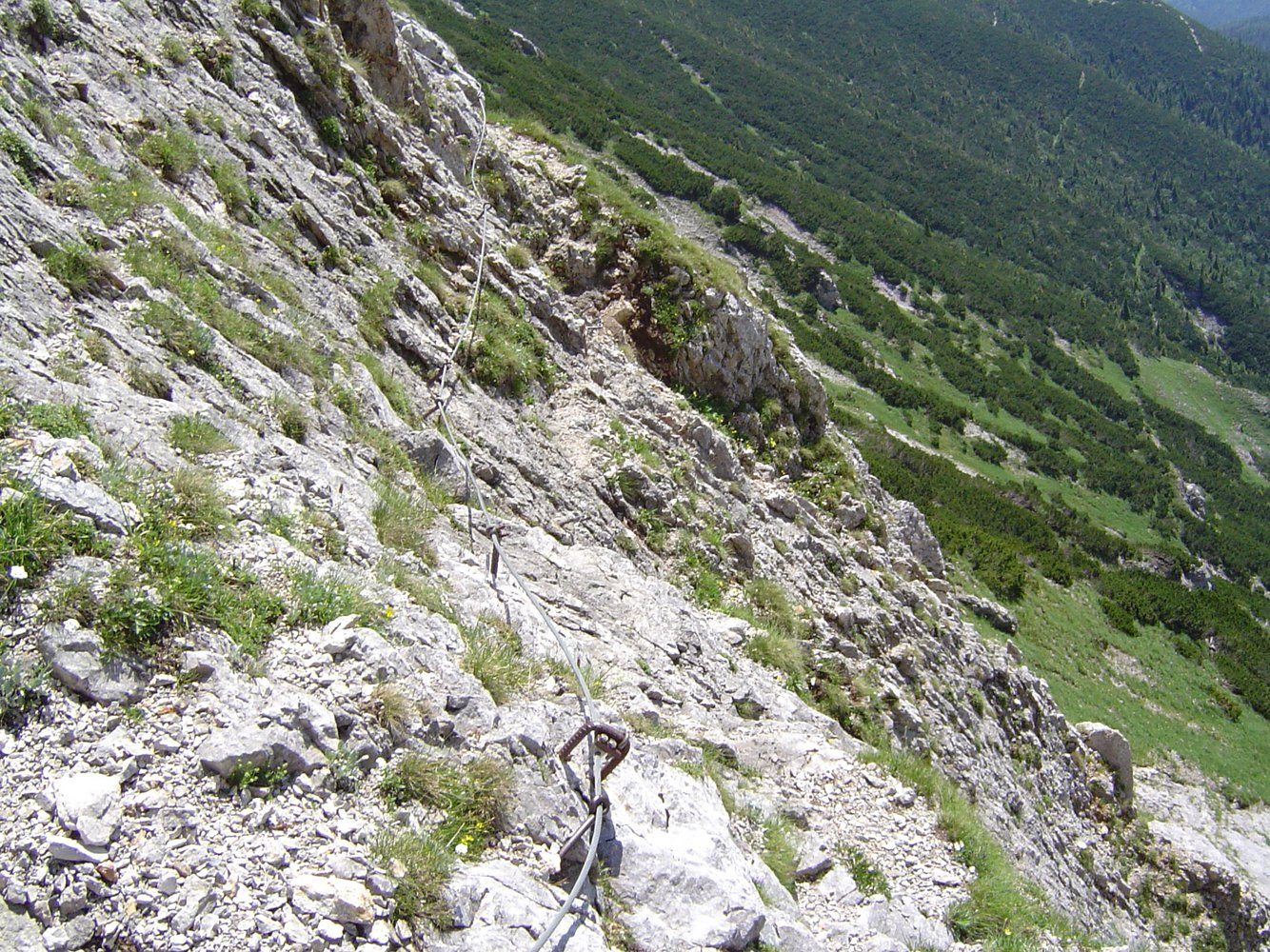 Achtung: Im Frühjahr kann das Seil vom Altschnee komplett bedeckt sein, man muss in diesem Fall gefährliche Schneefelder ungesichert überqueren (= man dreht im Zweifel besser um und bricht die Tour ab)!