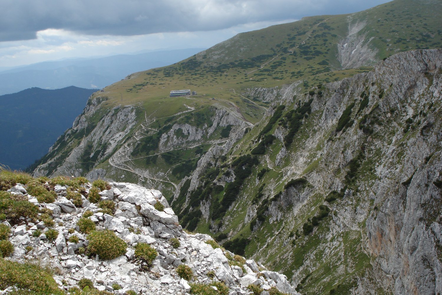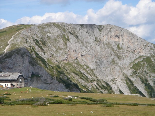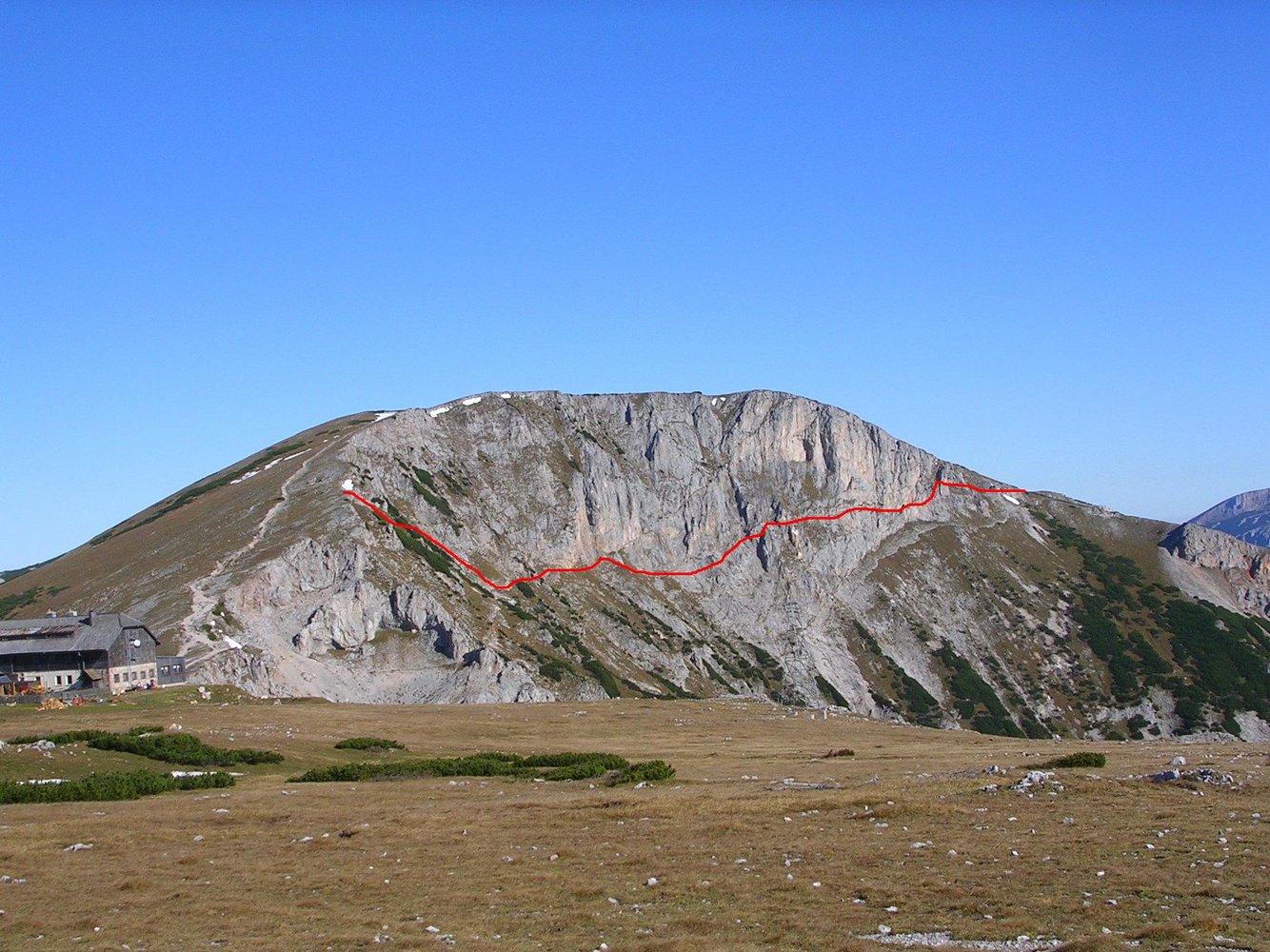 Wer vom Karl Ludwig Haus kommt steigt am besten über den Waxriegelsteig (schöner Kamm) zum Waxriegelhaus und weiter zum Preiner Gscheid ab.