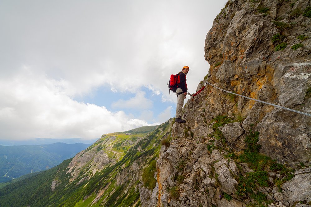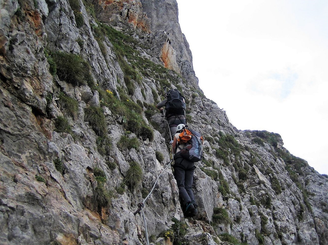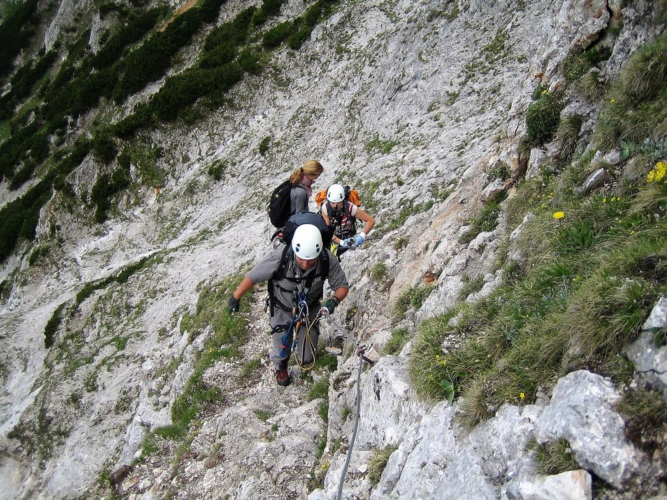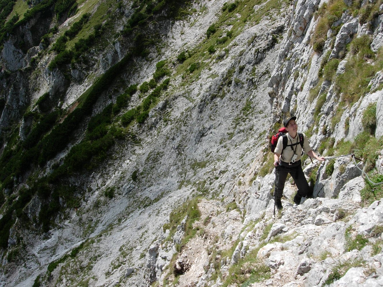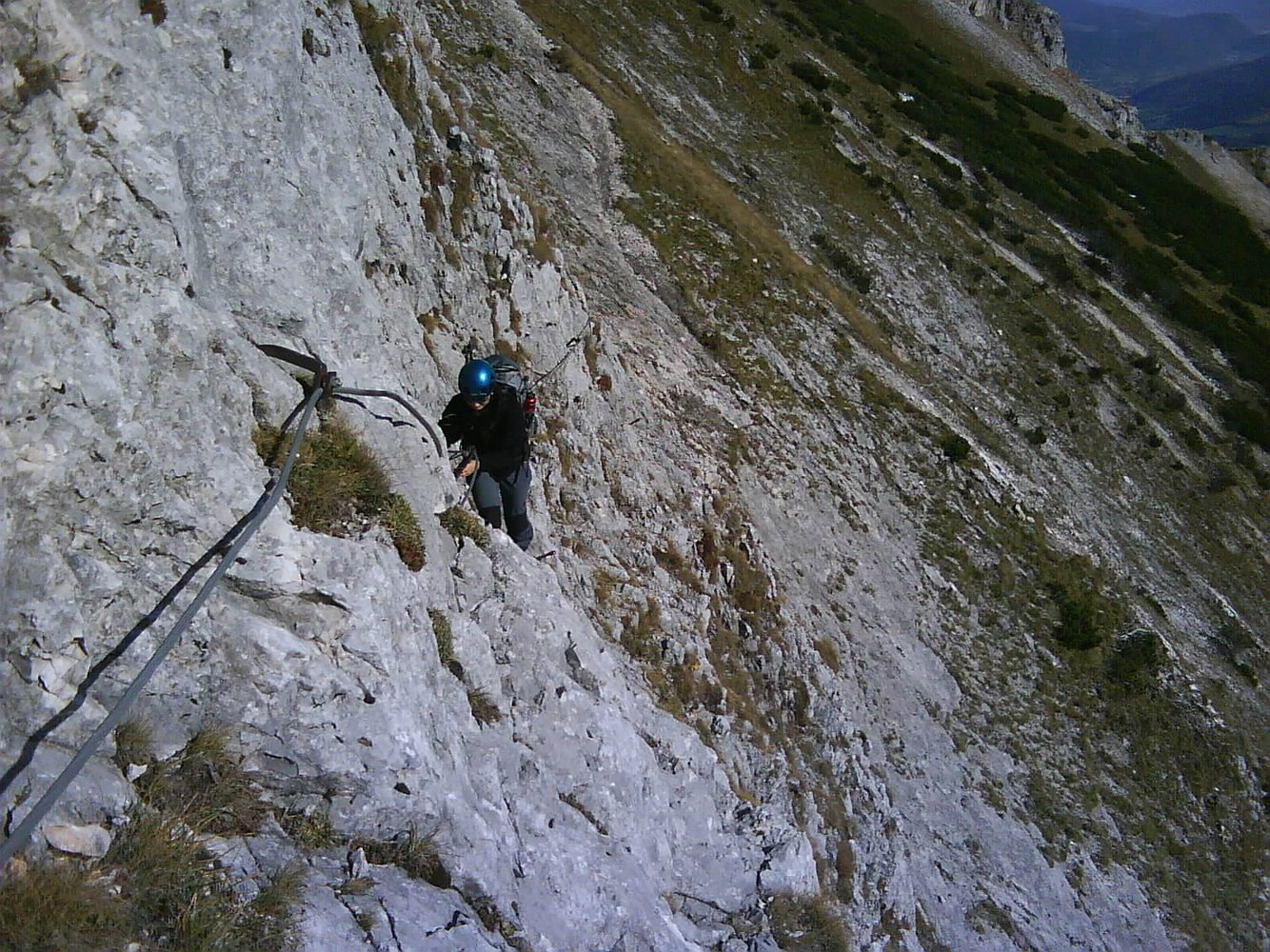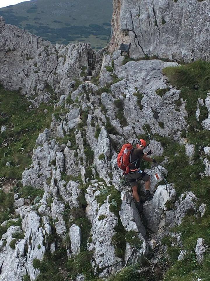 Leichter Klettersteig, der mit B bewertet ist, für Kinder und Anfänger geeignet, Trittsicherheit erforderlich! Die gesamte konditionelle Anforderung ist nicht zu unterschätzen.