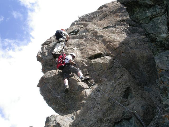 Ersetzt teilweise die bestehende Kletterroute über den Südwestgrat des Blauspitzes. Die offizielle Eröffnung des Klettersteigs fand am 20. August 2006 statt.