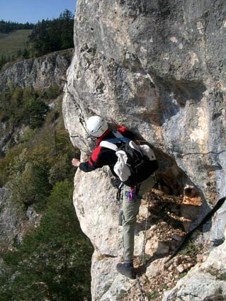 Kurz, aber oho. Die überaus rassige "Blutspur" ist ein Zuckerl für Nimmersatte. Wer über den ÖTK-Klettersteig aufgestiegen ist, wird in der "Blutspur" eine ultimative Steigerung der Schwierigkeiten erleben. Auch erfahrene Klettersteiggeher sollten diesen Steig trotz der geringen Länge nicht unterschätzen.