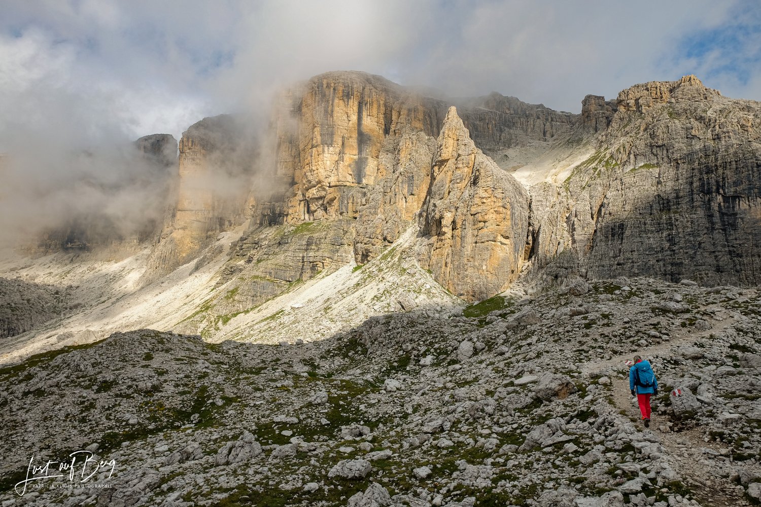 Tipp: Als Abstieg empfehlen wir den Normalweg bis zur Bergstation Boè Gondelbahn, 2198 m beim Crep de Mont zu gehen (1¼ Std.).