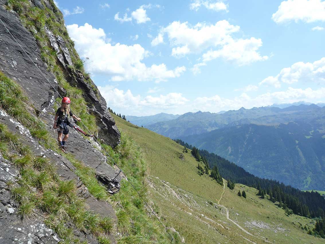 Von der Bergstation über den Wiesenhang zum bereits sichtbaren Klettersteig aufsteigen. Der Einstieg befi ndet sich auf der westlichen Seite des Steiges.