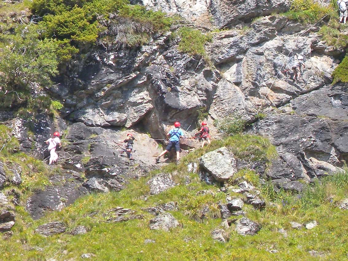 Klettersteigausrüstung und Helm - für Kinder ist die Mitnahme eines Sicherungsseils sinnvoll.