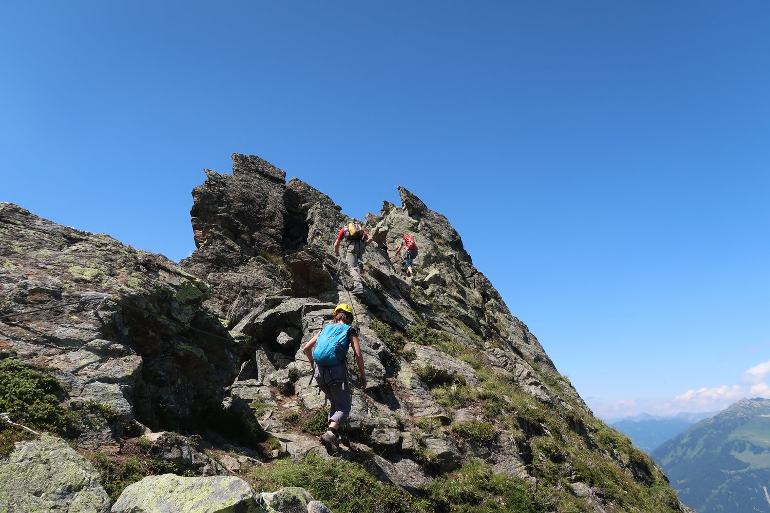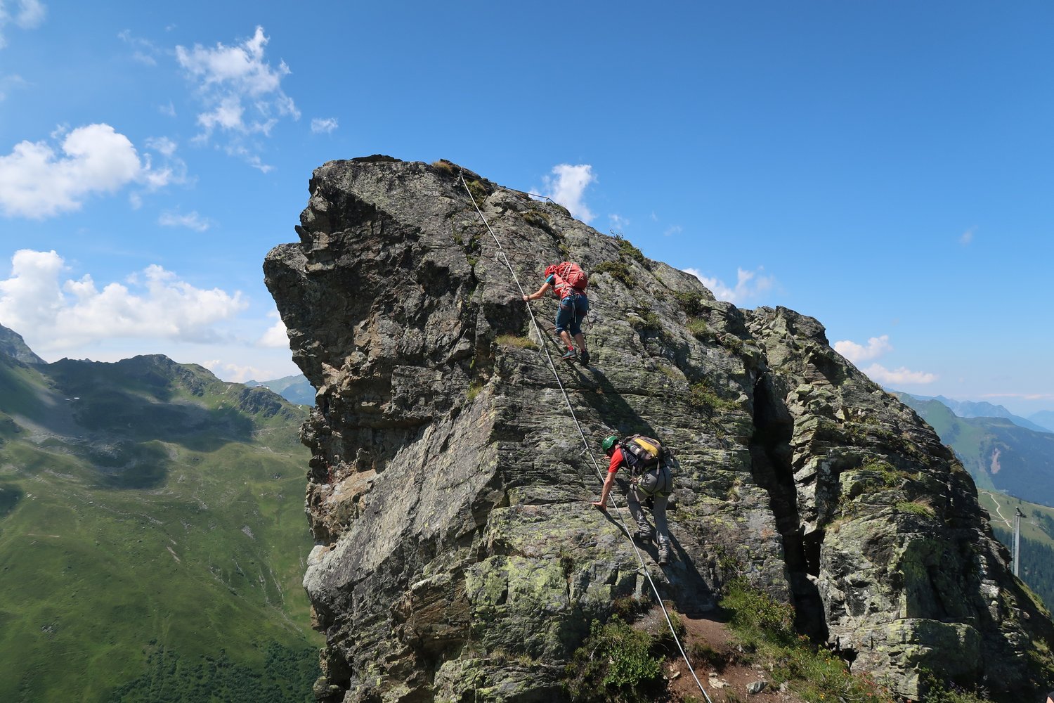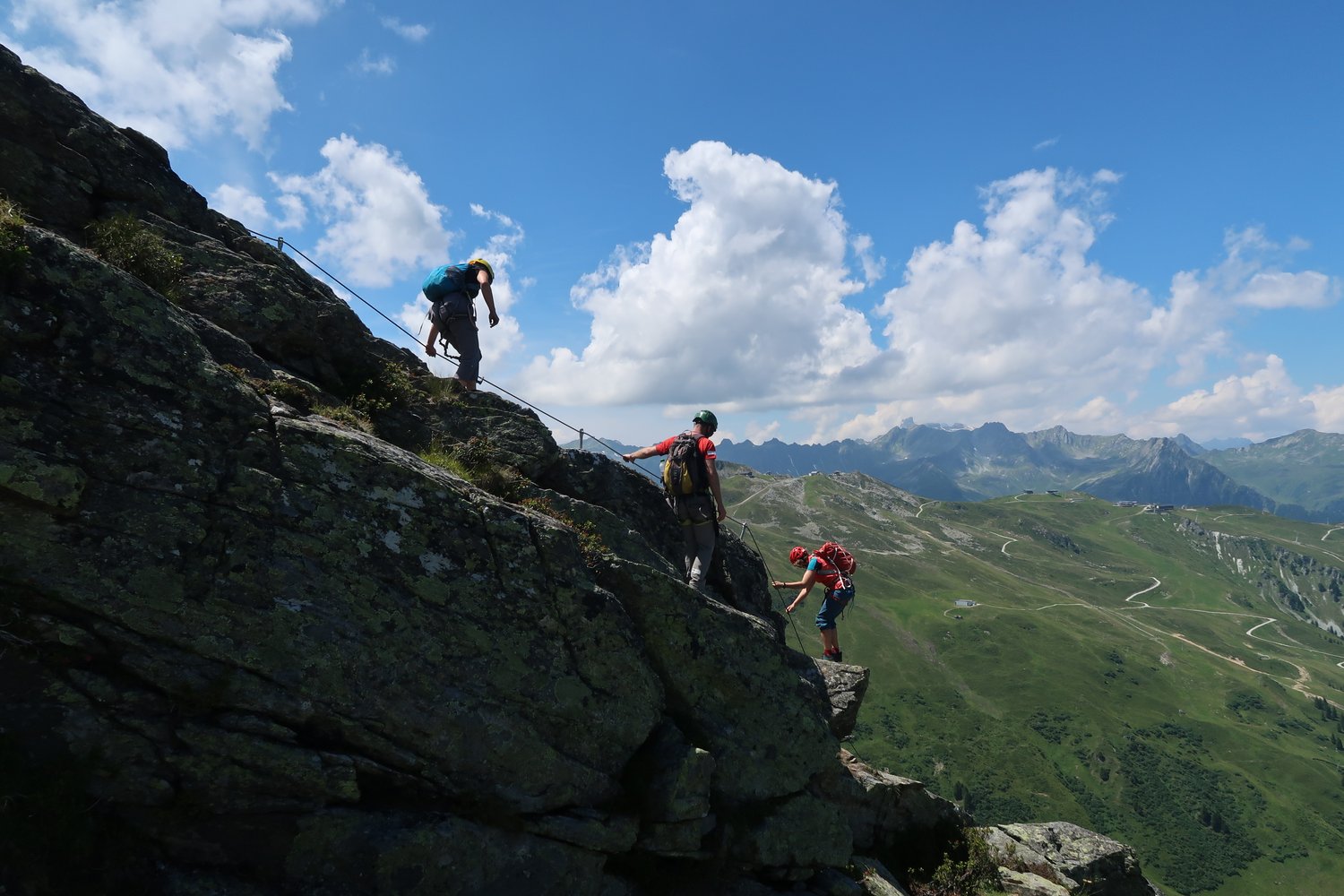 Klettersteigsets können beim Intersport bei der Versettla Talstation auch ausgeliehen werden.