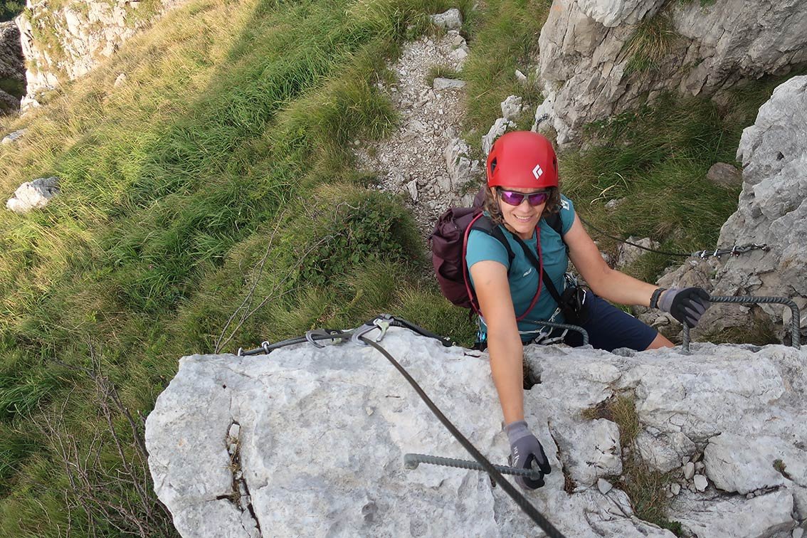 Der Klettersteig ist mit Ketten, Stahlseil und vielen Trittklammern ausgestattet.