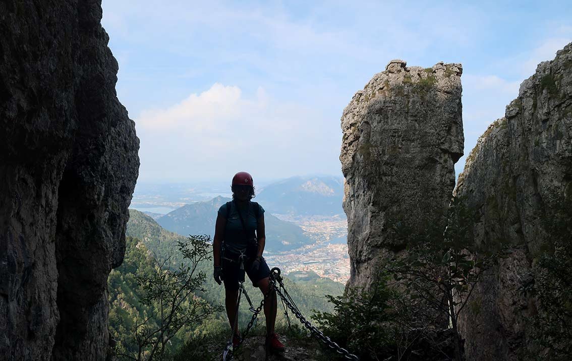 Die Centenario Ferrata oberhalb des Passo Fo ist ein schöner Genussklettersteig oberhalb von Lecco. Der Klettersteig lässt sich gut mit einer Besteigung des Monte Resegone oder mit der genau darüber liegenden Ferrata Franco Silvano (Passagen C/D, meist B/C und B) verbinden. Gesamt ein schöner, nicht so überlaufener Klettersteig mit perfektem Como-See-Blick.