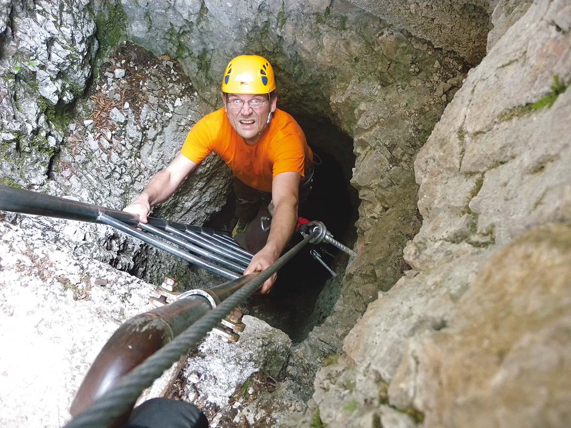 Bei Nässe ist die Klettersteigrunde unangenehm zu begehen.