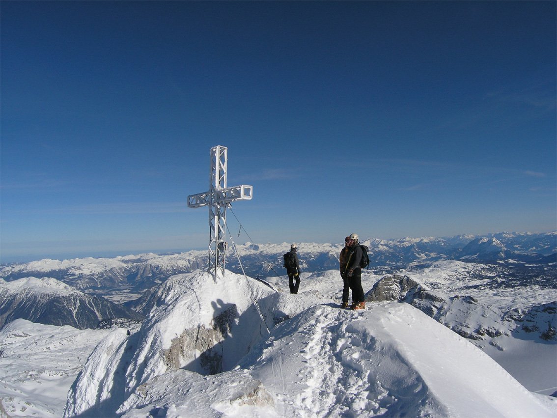 Unten zuerst durch eine kurze Rinne, dann im Zick-Zack etwas steiler hinauf bis man nach einigen blockigen Passagen in die breiter werdende Rinne kommt. Am rechten Rand der Rinne aufwärts bis zu den Gipfelschrofen und über diese direkt zum Gipfelkreuz.