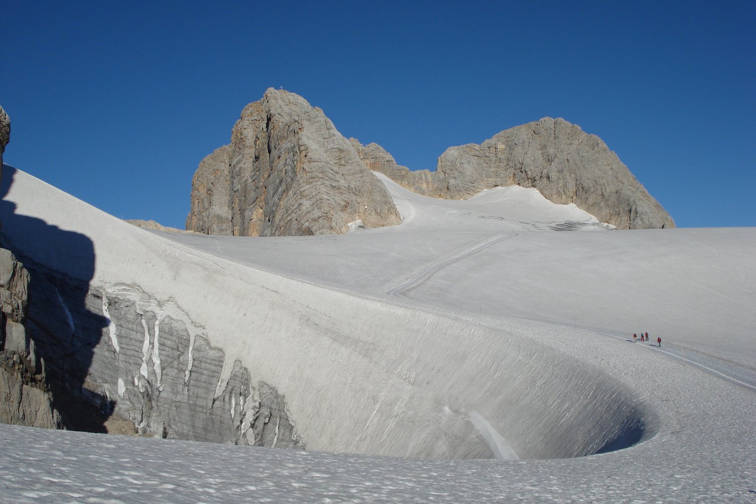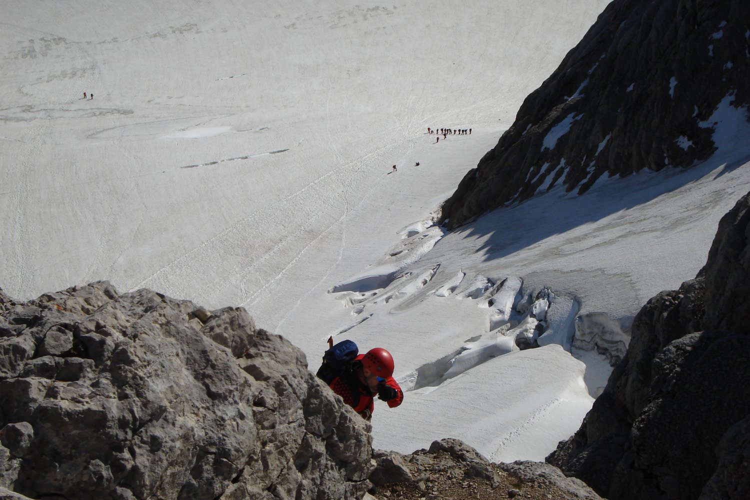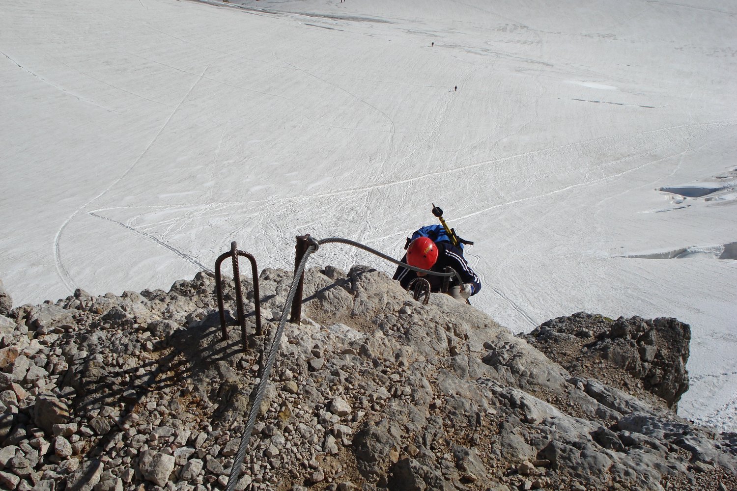 Je nach Größe der Randkluft kann der Überstieg vom Gletscher auf den Klettersteig erschwert oder gar unmöglich sein.
