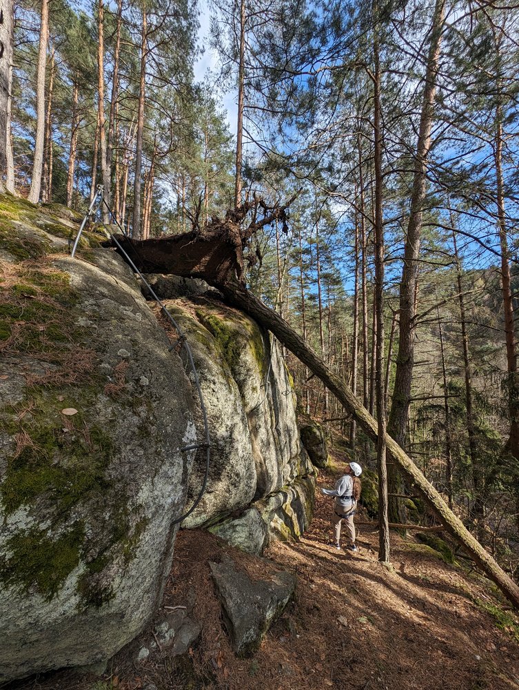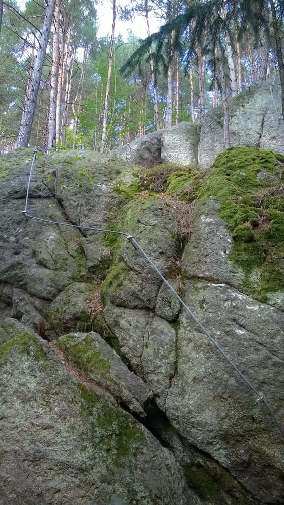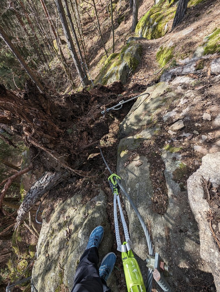 Bei Nässe nicht zu empfehlen. Es gibt dort noch ein paar kurze, aber recht gut abgesicherte Klettertouren.