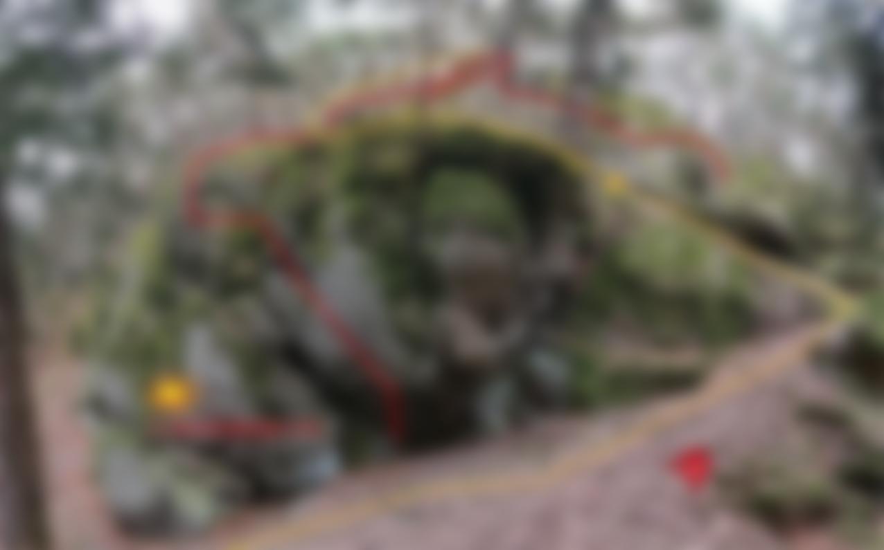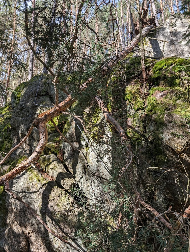 Unterer Felsen mit ca. 5 Klettermetern (ca. B Schwierigkeit). Beim oberen Felsen gibt es 3 Varianten: Links B/C, Mitte C und rechts auch C.