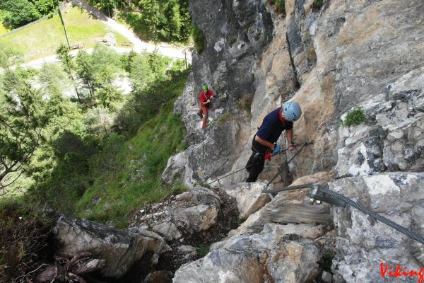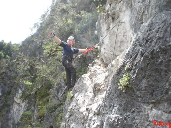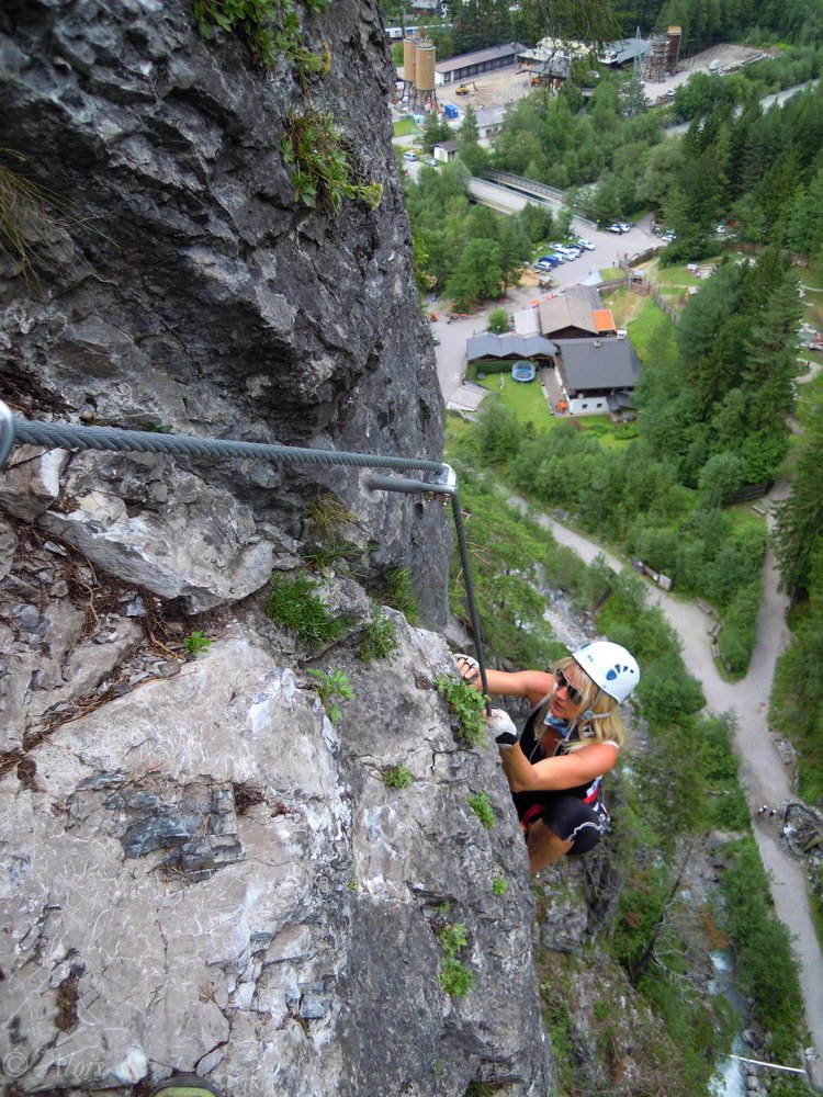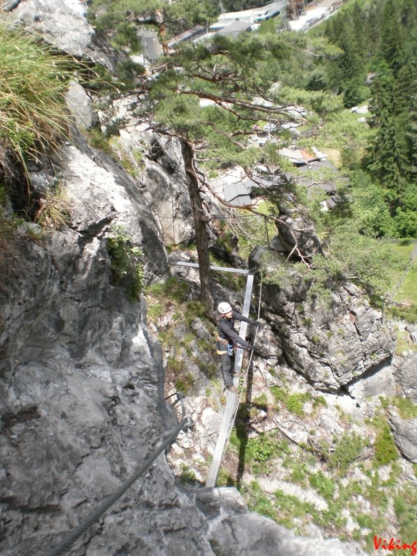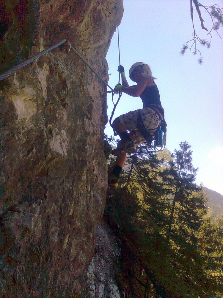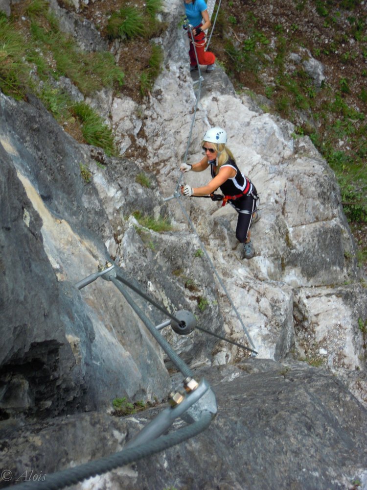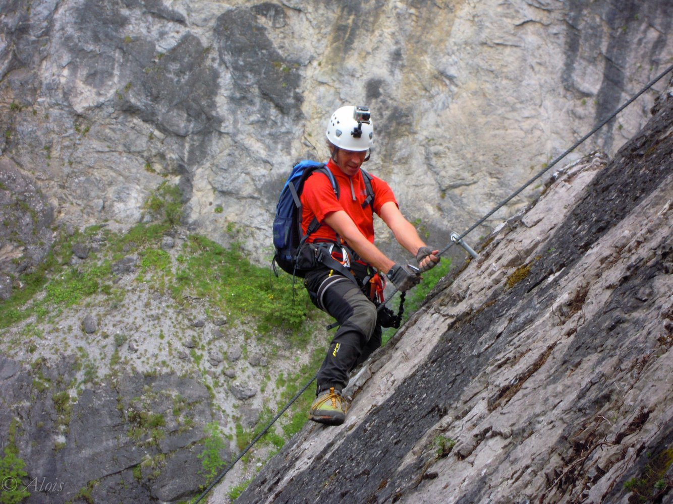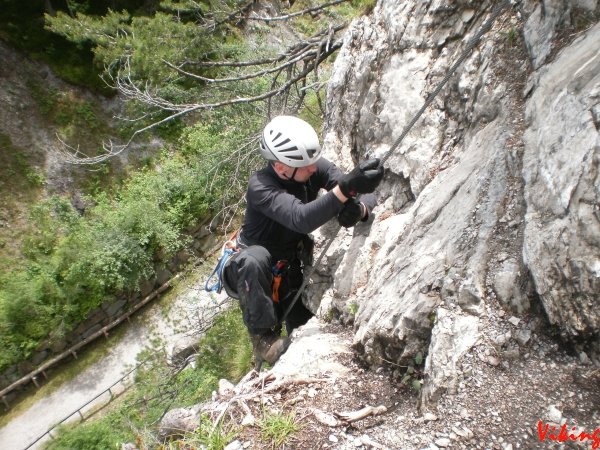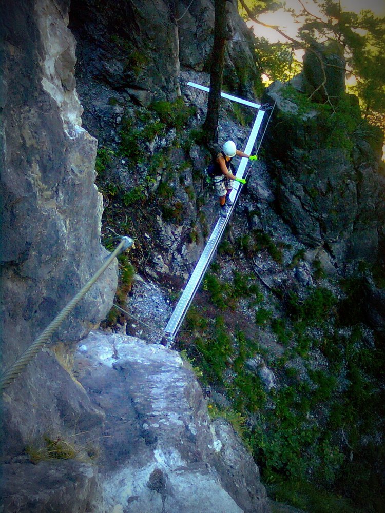 von Alois Moosmann.Zuerst über den Galitzenbach über eine Seilbrücke (A), dann auf einer Plattenwand (kurz E, dann C bis D) höher klettern. Weiter Wandkletterei (Stelle D) zu einem kleinen Überhang (C). Es folgt ein steiler Pfeiler (Stelle D), danach etwas leichter zur Abzweigung (Rastplatz). Links ist die leichte Variante (D), gerade gelangt man zum Notausstieg (B) und zur Variante Masochist (E/F).