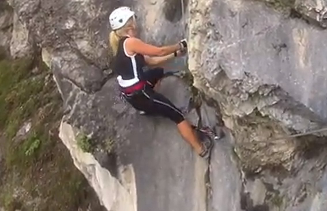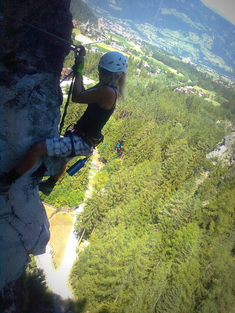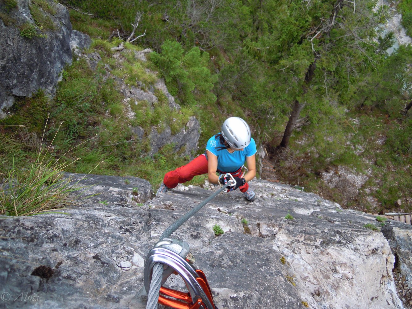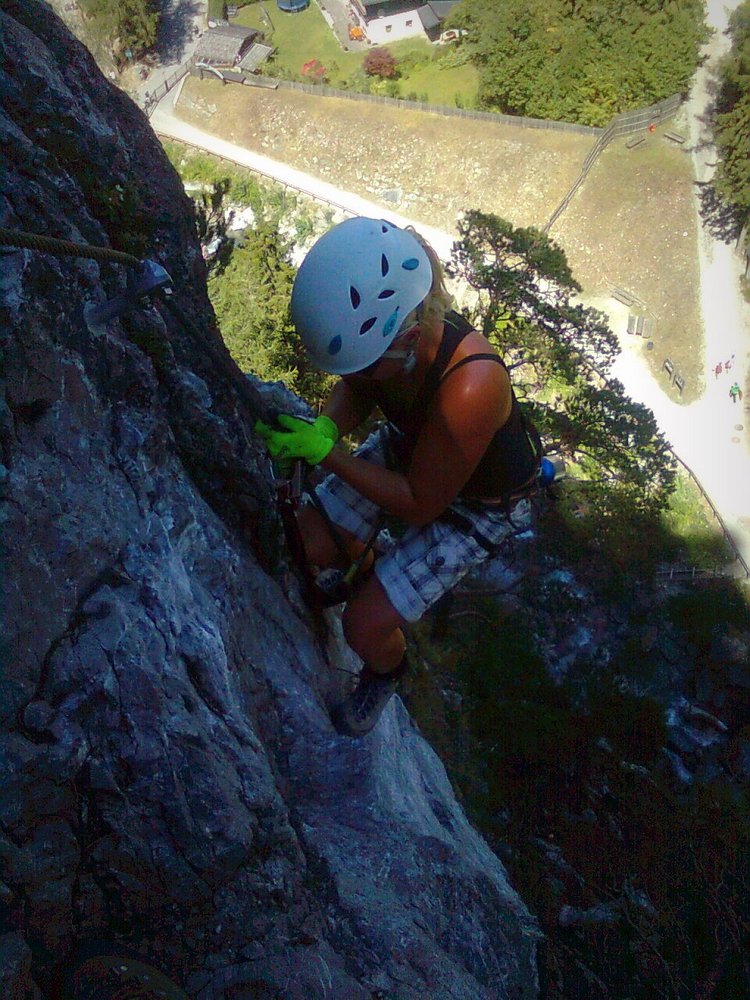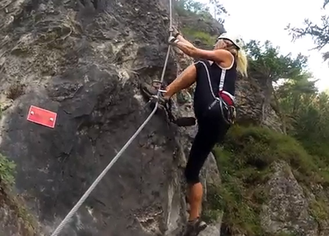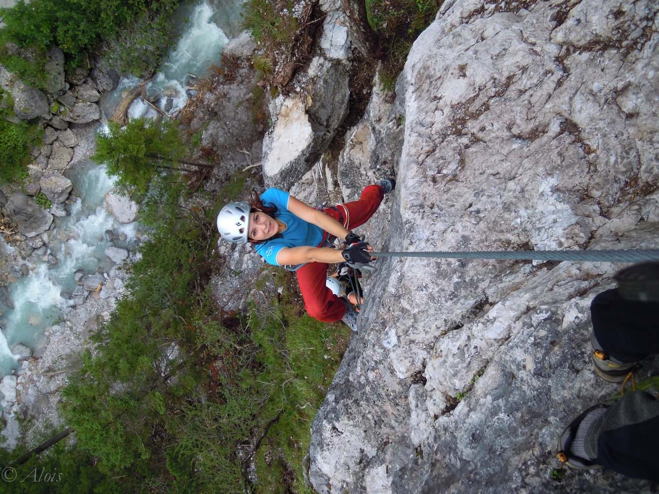 von Alois Moosmann.Zuerst über den Galitzenbach über eine Seilbrücke (A), dann auf einer Plattenwand (kurz E, dann C bis D) höher klettern. Weiter Wandkletterei (Stelle D) zu einem kleinen Überhang (C). Es folgt ein steiler Pfeiler (Stelle D), danach etwas leichter zur Abzweigung (Rastplatz). Links ist die leichte Variante (D), gerade gelangt man zum Notausstieg (B) und zur Variante Masochist (E/F).