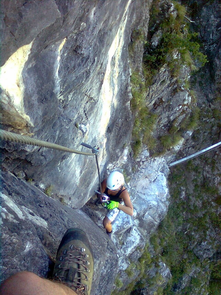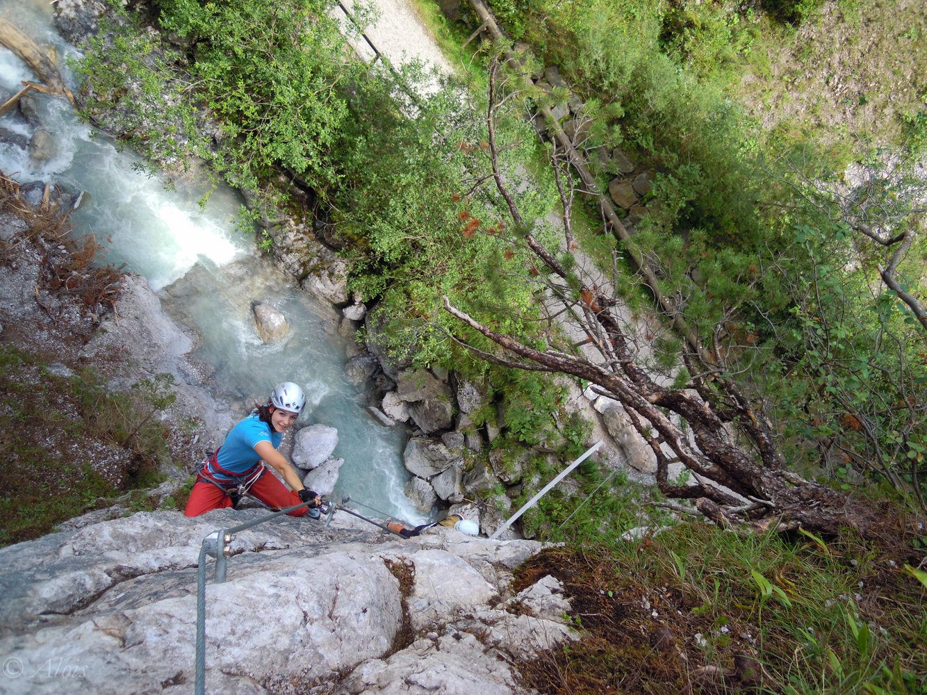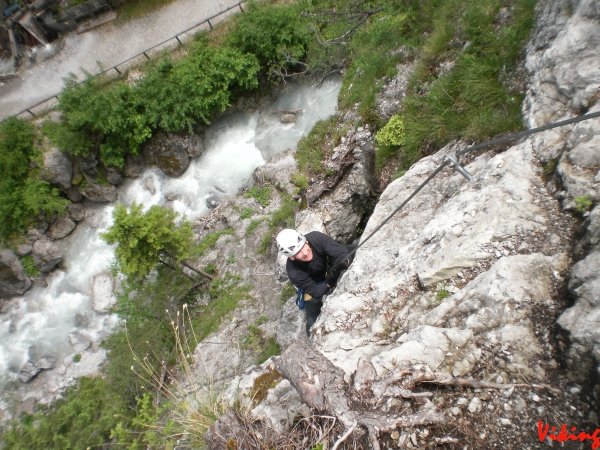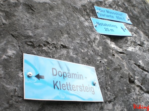 Der Dopamin Klettersteig ist eine steile Sportferrata im vorderen Teil der Galitzenklamm. Vor allem die direkte Variante "Masochist" ist mit dem Schweinebauch-Überhang (E/F) extrem schwer und nur Begehern mit viel Kraft und guter Technik vorbehalten. Die linke Schleife, also quasi der Normalweg ist aber auch nicht von schlechten Eltern, der Einstieg E und einige oft recht glatte D-Stellen sind zu bewältigen. Der Klettersteig ist top und stellt eine schöne Bereicherung des Klettersteigangebotes in der Klamm dar.