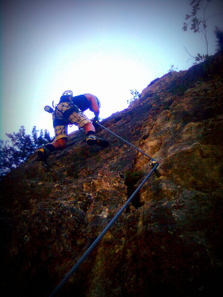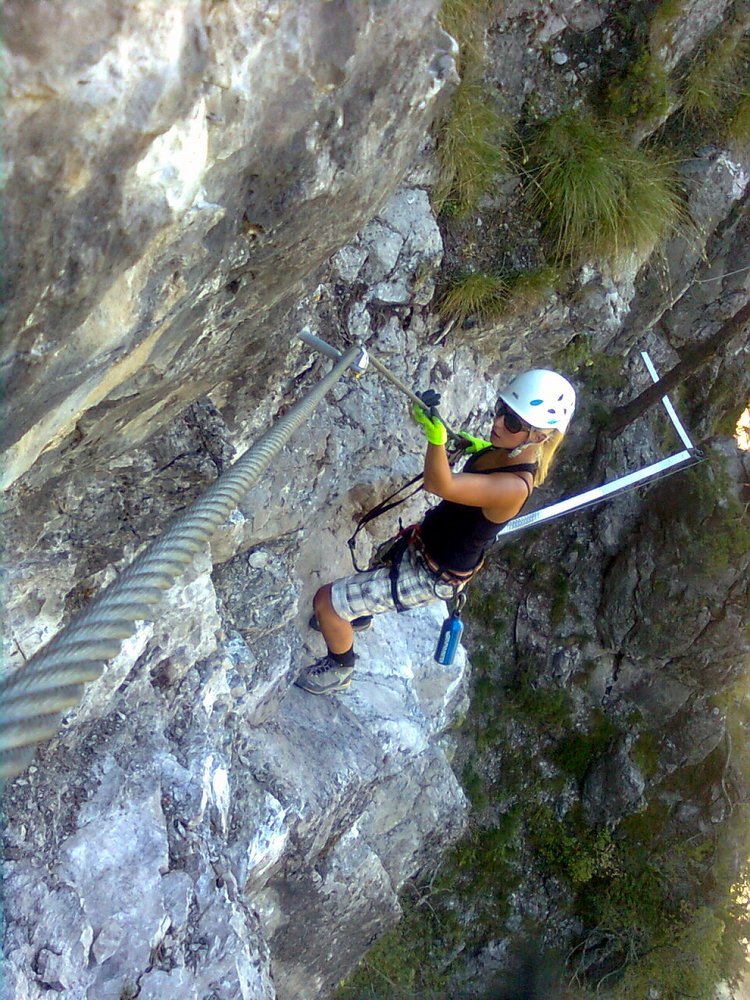 Komplette Klettersteigausrüstung und Klettersteighandschuhe, für die Var. "Masochist" könnten Kletterschuhe von Vorteil sein.