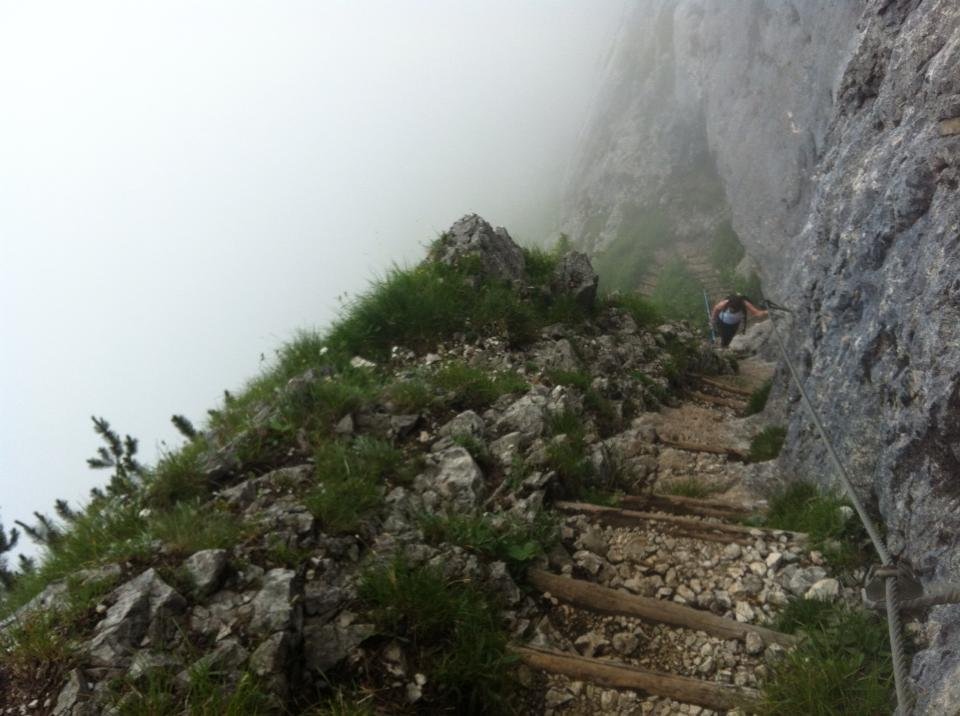 Trittsicherheit und Schwindelfreiheit erforderlich. Für Kinder aufgrund des gewaltigen Höhenunterschieds nicht geeignet. Bei Nässe extrem gefährlich!