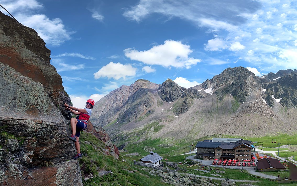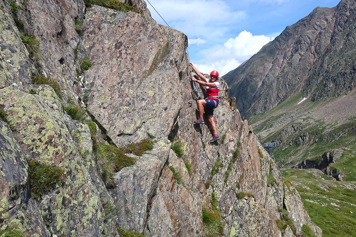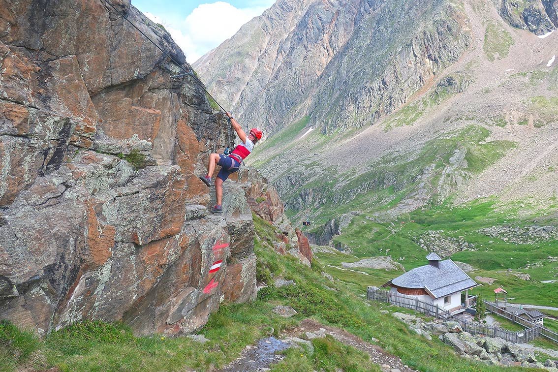 Direkt bei der Dresdner Hütte gibt es drei kurze, ansprechende Übungsklettersteige. Die Ferratas werden gerne als Einstimmung für den Fernau Klettersteig gemacht, die Kanten-Ferrata (B) eignet sich auch sehr gut als Familien Klettersteig. Oben an der Platte kann man sich an D/E versuchen, wer diese Passage nicht problemlos schafft, braucht nicht zum Fernau-Express Klettersteig hinübergehen. Fazit: Drei kurze, aber durchaus beliebte Klettersteig in unmittelbare Hüttennähe im Stubaier Gletscher Gebiet.