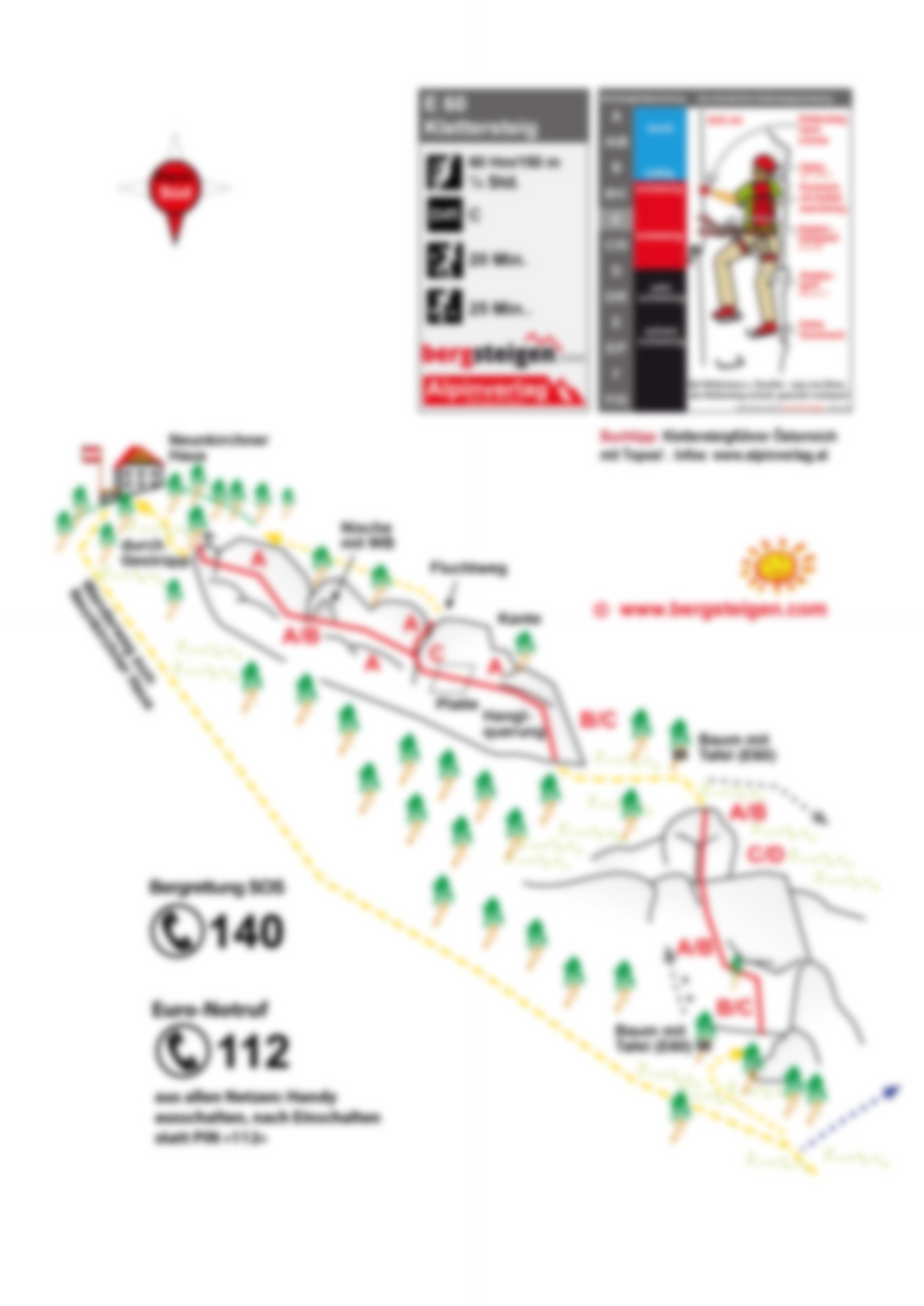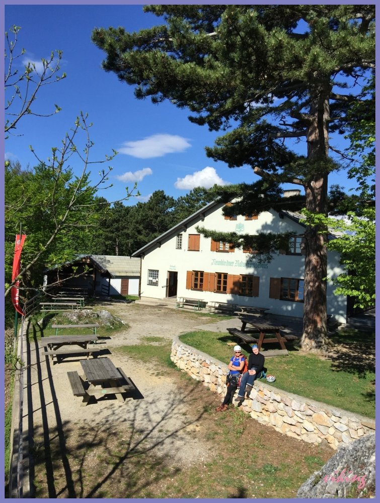 Vom Ausstieg in Kürze im Gestrüpp an die Geländekante und links zum Neunkirchner Haus. Über den Wanderweg zurück zum Ausgangspunkt.