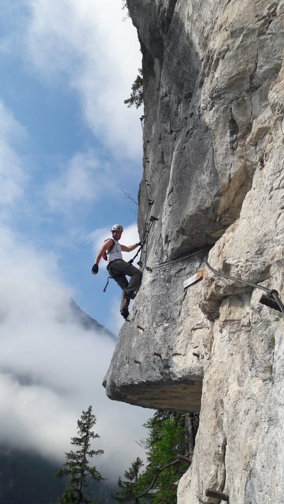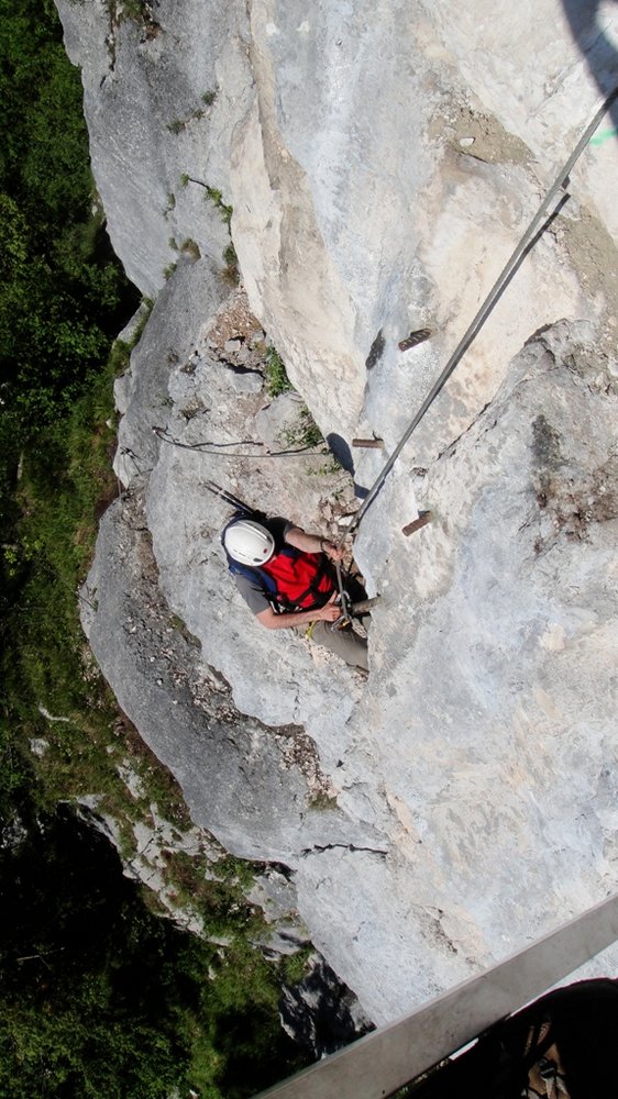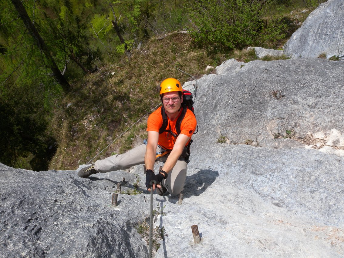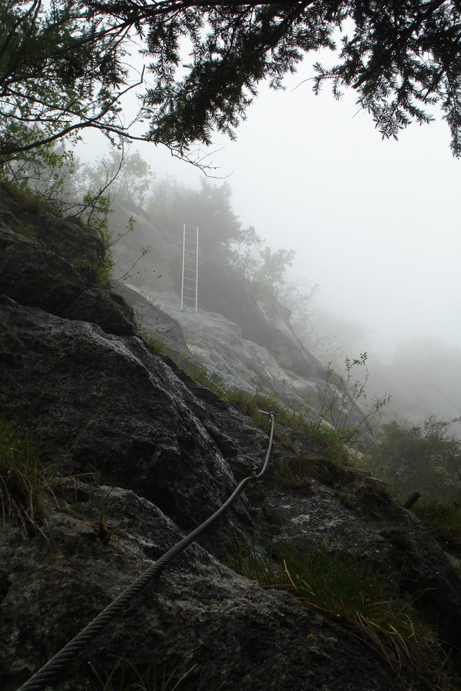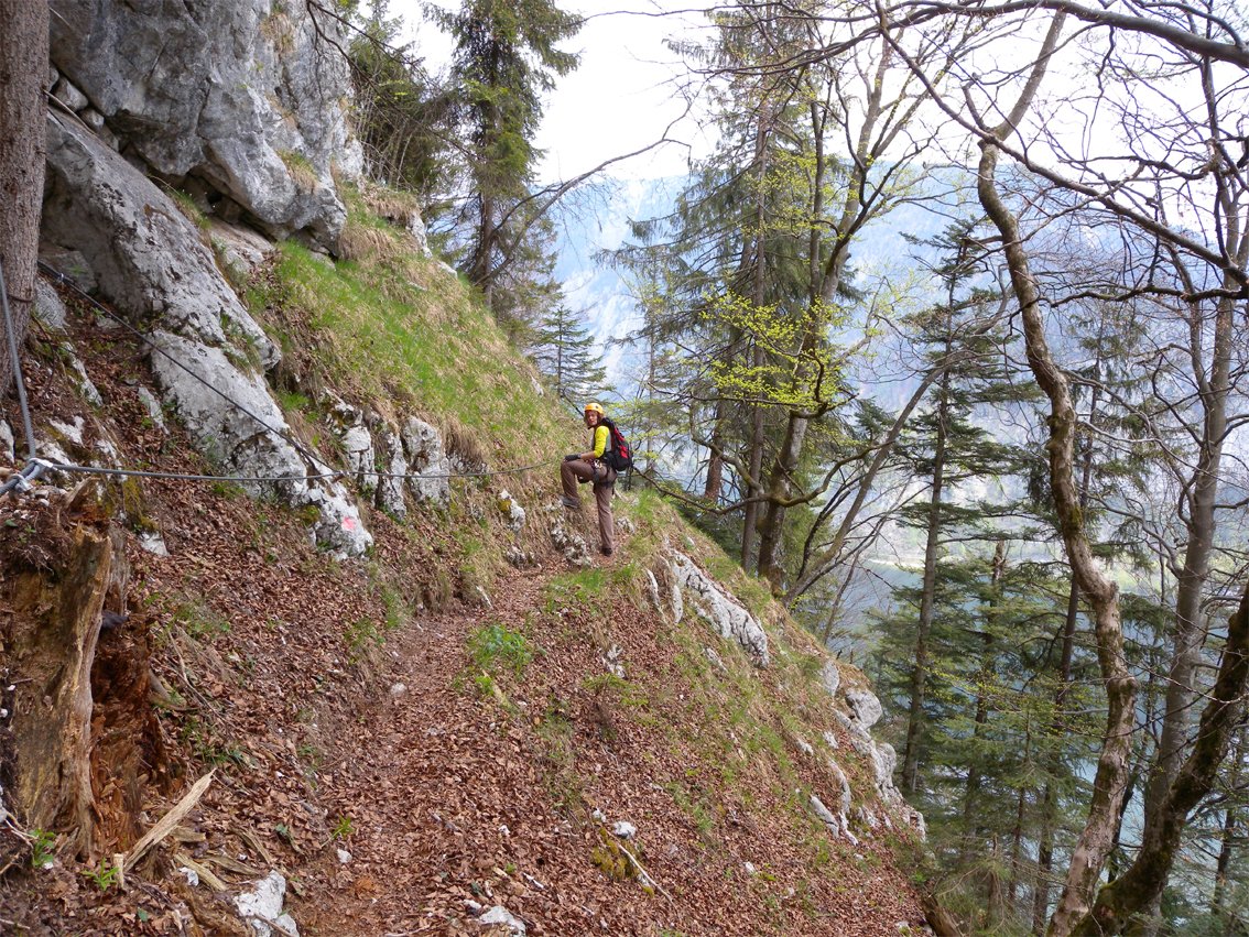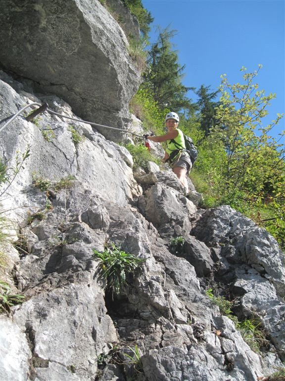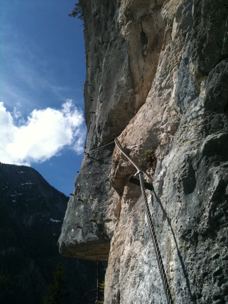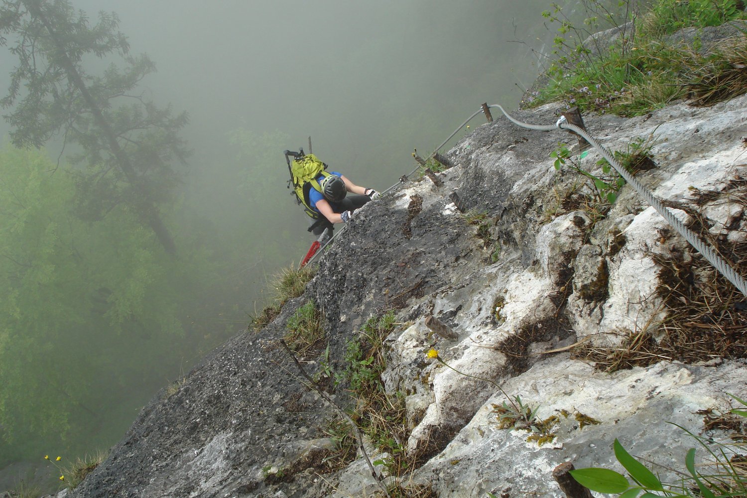 24.05.2010: nach nächtlichem Regen war der Steig vollkommen nass. Steigerte die Schwierigkeit. Und den Adrenalinspiegel. Und den Lustspiegel auf ein "Belohnungs-Bier" danach...,