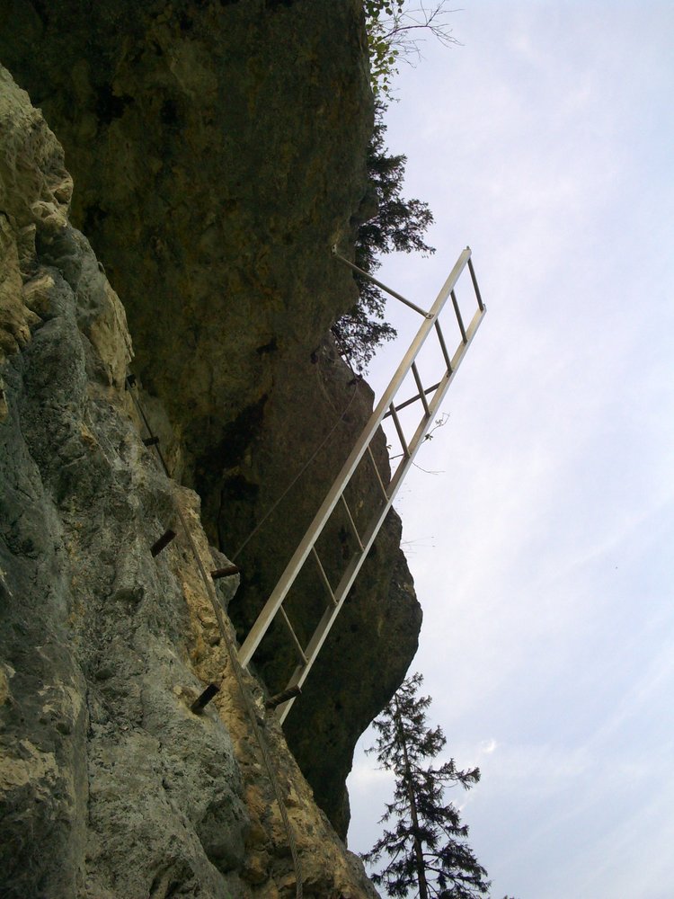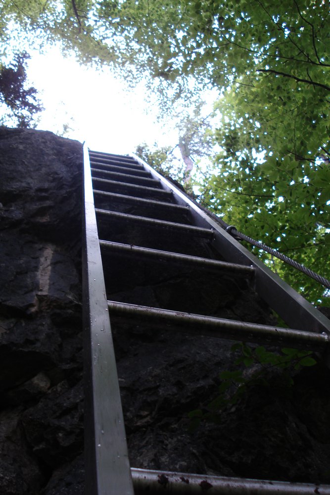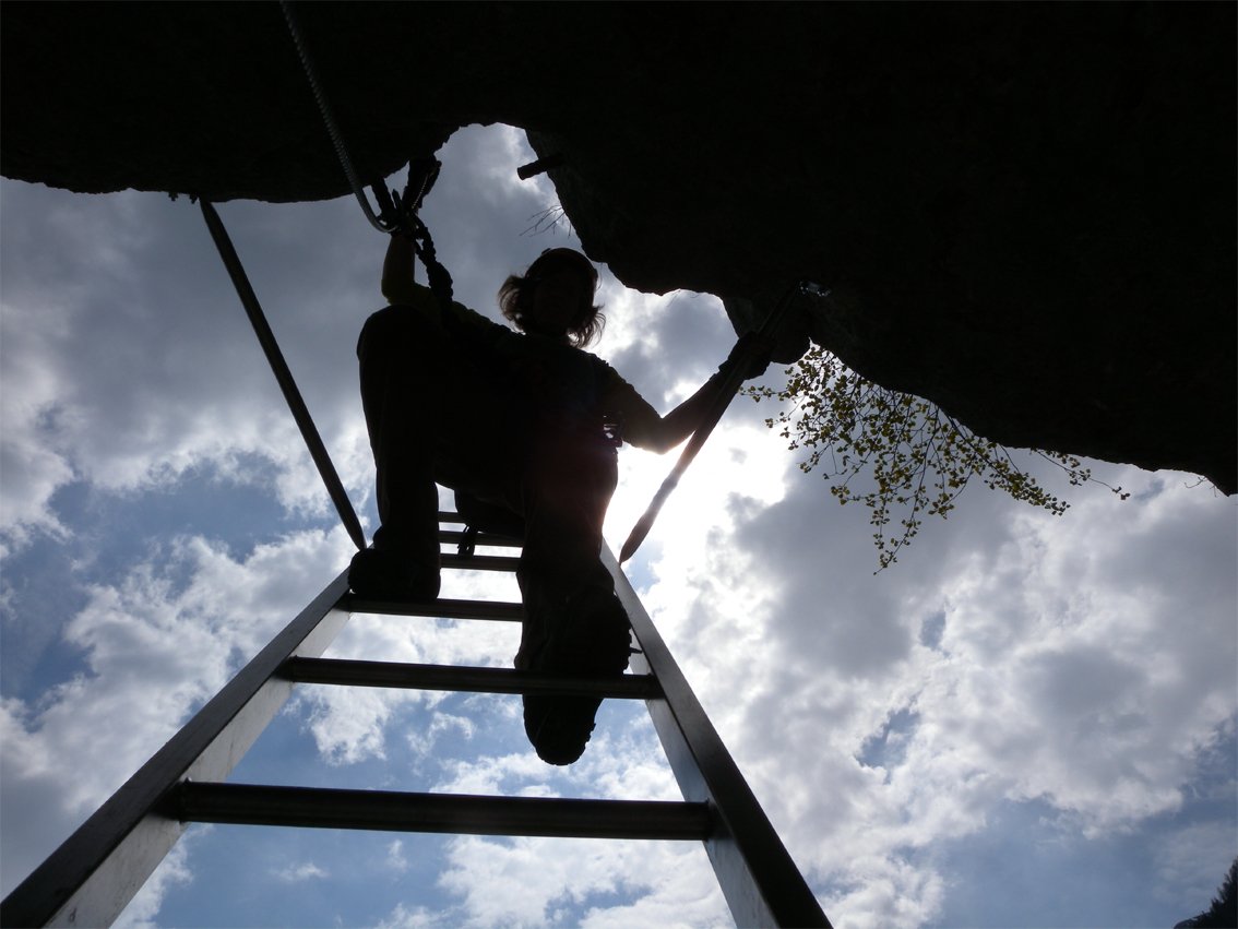 Die 8-Meter-Leiter am Einstieg des Klettersteiges.,