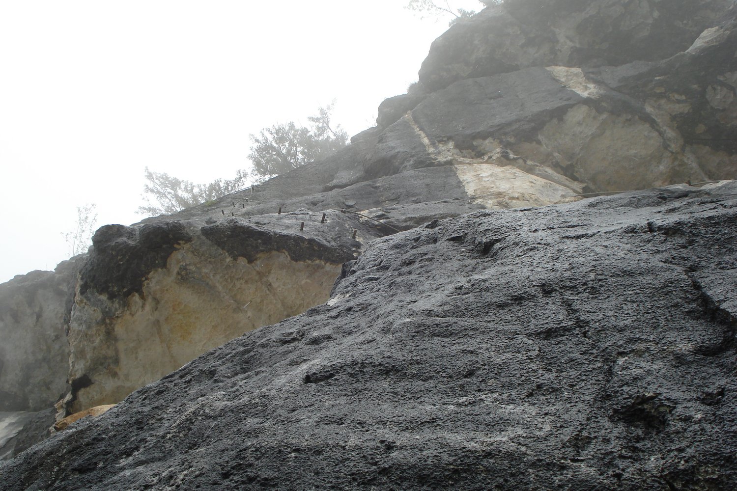 Steile Platten vor Panoramaleiter (C): mystischer Aufstieg im Nebel...,