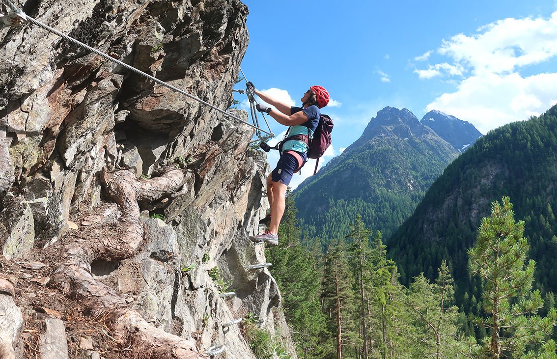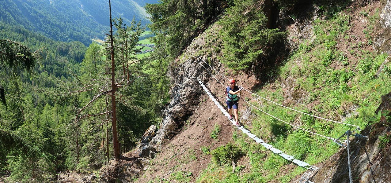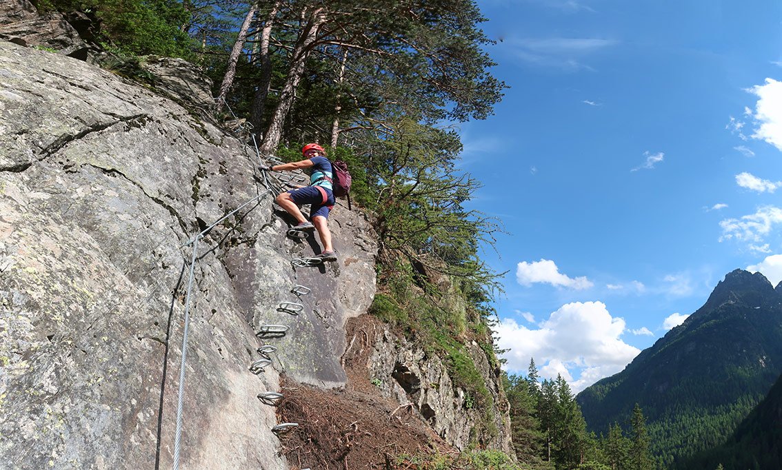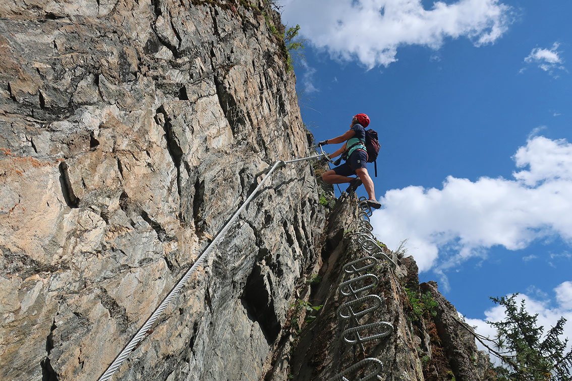 Der Eckkamm Klettersteig im Ötztal verbindet den ansprechenden Sagenweg mit einem leichten Ferrata Abenteuer. Geschickt wurde von den Erbauern an einer unscheinbaren Felswand ein langer - 370 Klettermeter - Travers-Klettersteig gebaut. Alle steileren Wandpassagen wurden mit sehr vielen (gesamt um die 450 Stück!) Trittbügeln entschärft. Somit ist es auch Anfängern und ausdauernden Familien möglich, dieses Ferrata unbeschwert zu genießen. Der gelungene Eckkamm Klettersteig ist die leichteste Ferrata im Ötztal - schon alleine dieser Umstand und die gute Kombination mit dem Sagenweg wird diese Klettersteigtour zum absoluten Publikumsmagneten machen.