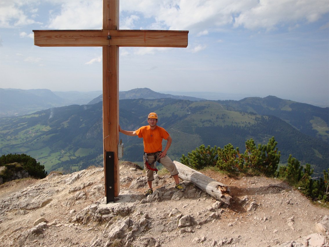 Der Edelrid Klettersteig Salewa ist ein klassischer „Familien-Klettersteig“ im mittleren Schwierigkeitsbereich, bei dem ein „nicht klettersteigendes“ Familienmitglied gemütlich über den Wanderweg zum Gipfel aufsteigen kann - oben trifft man sich und genießt gemeinsam den fantastischen Ausblick zu den Allgäuer Alpen. Leider sind mehrere erdige Gehpassagen auf der Route, vor allem im zweiten und dritten Teil ist man fast nur auf Bändern unterwegs. Landschaftlich aber ein eindrucksvolles Erlebnis im Alpenvorland, welches vor allem im Herbst interessant ist.
