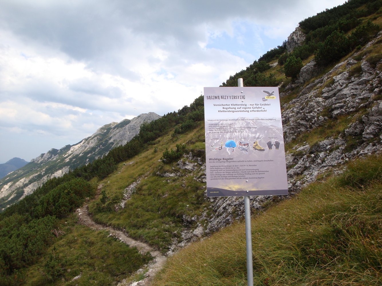 - Grundsätzlich den Steig gesichert mit der nötigen Ausrüstung begehen