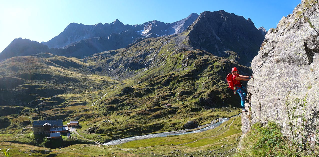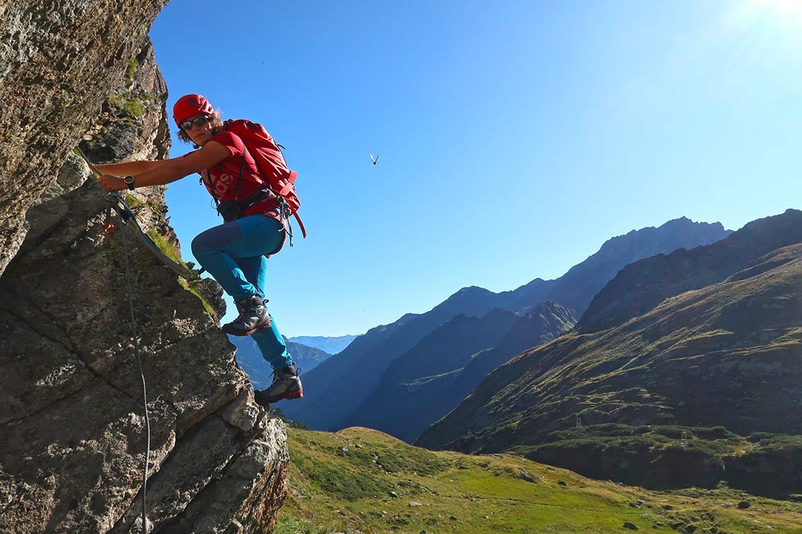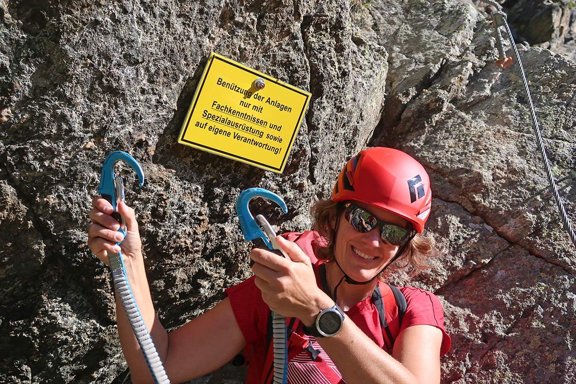 Komplette Klettersteigausrüstung und Helm und evtl. Sicherungsseil ungeübte Klettersteiggeher.