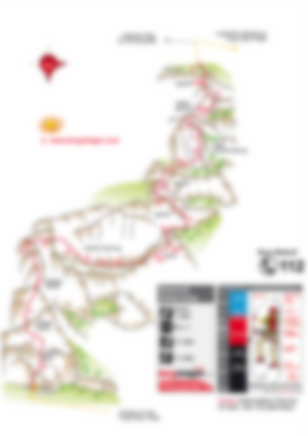 Siehe Topo. Einen steilen Pfeiler (C) empor und nach rechts queren (B, Stelle B/C). Über Stufen (C) in flacheres Gelände (B bis B/C) und weiter zum Ausstieg (A).