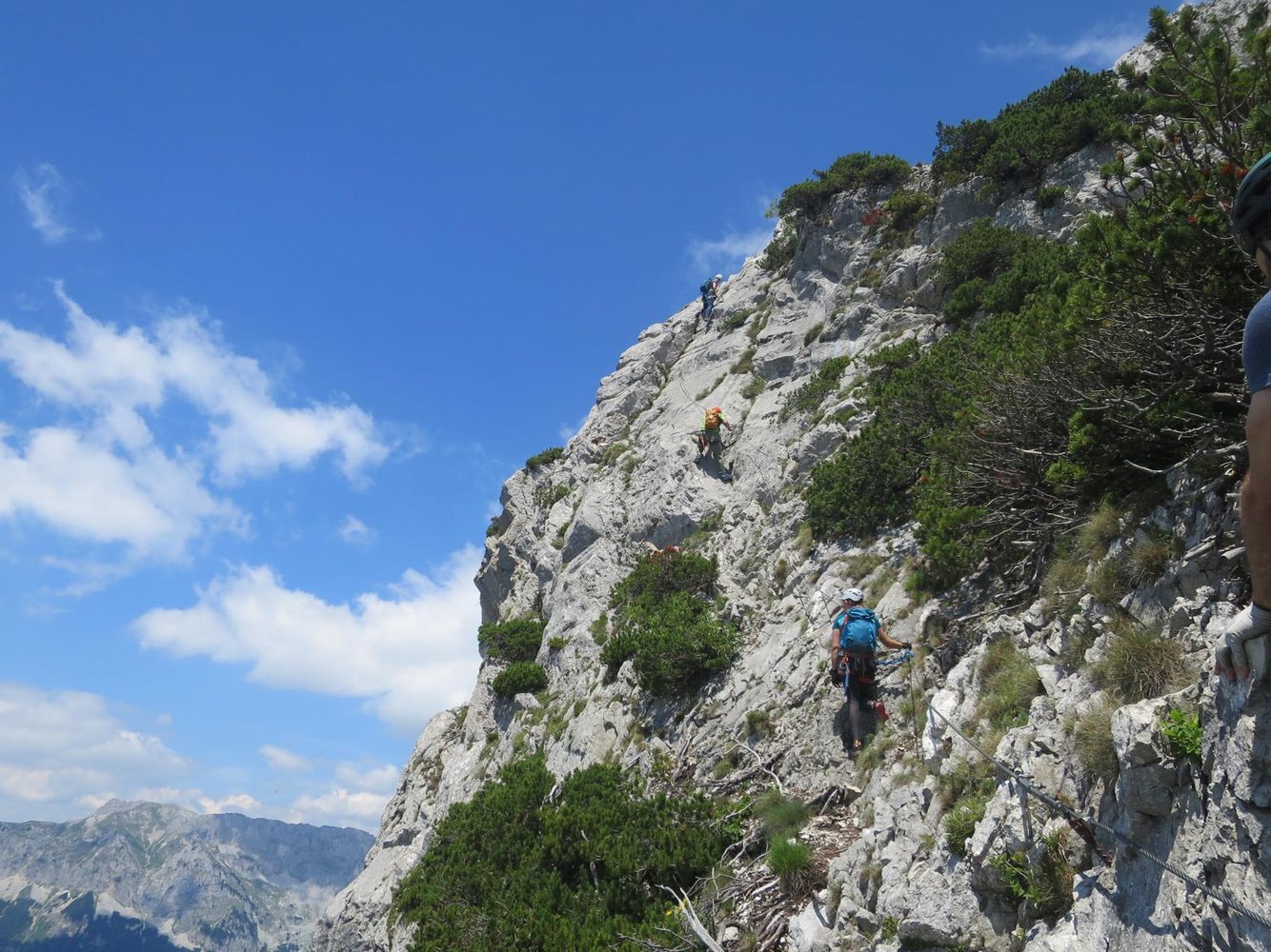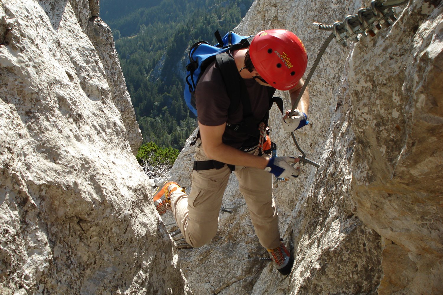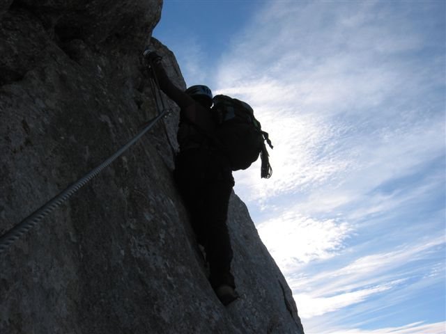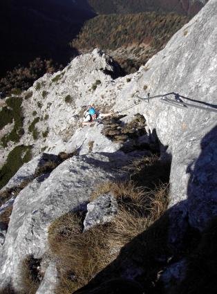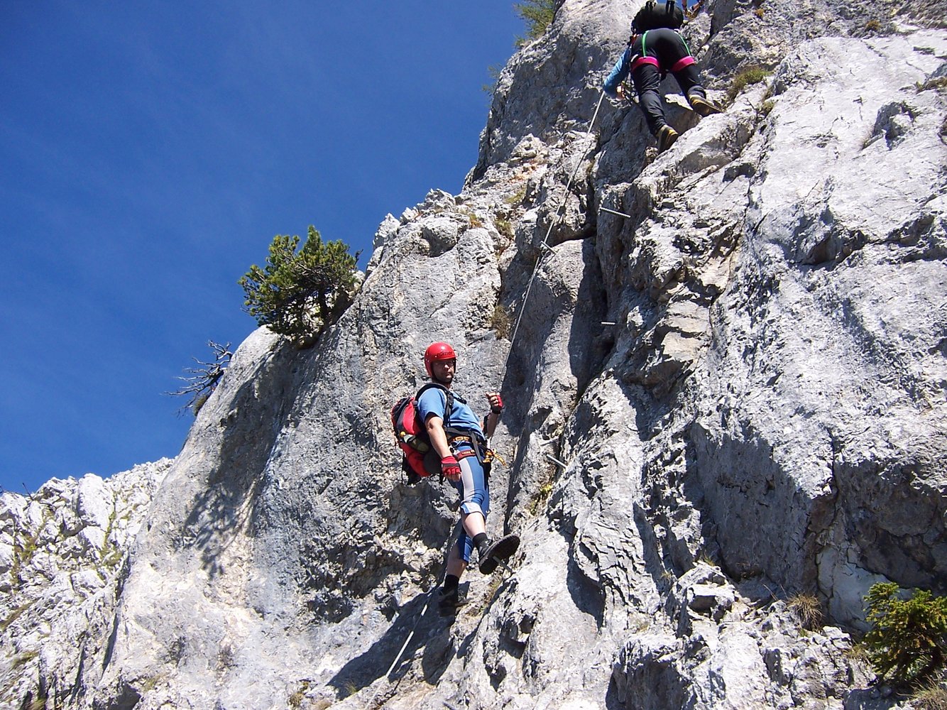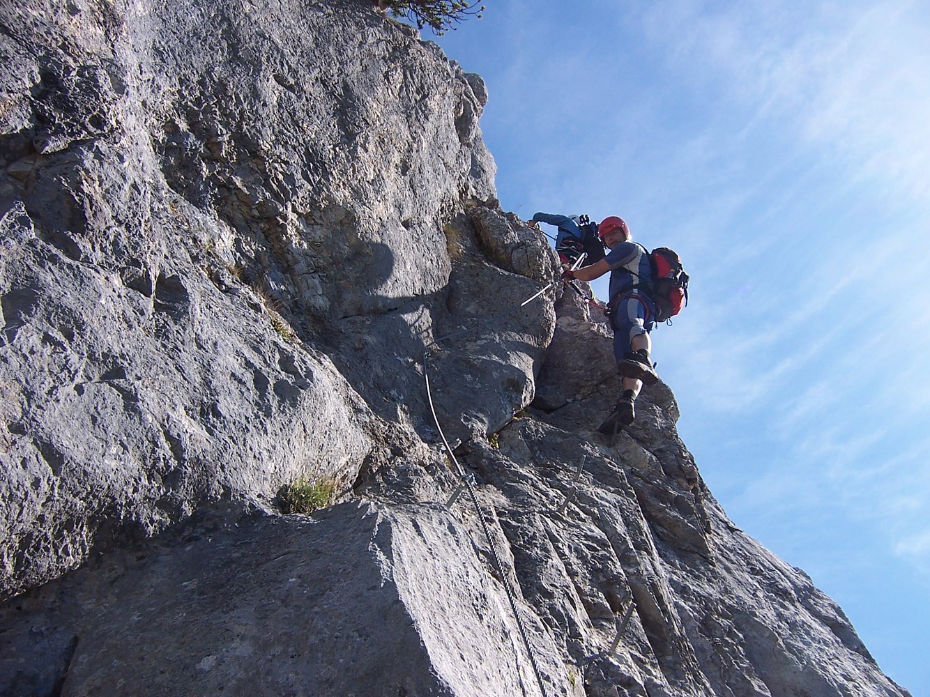 Der Klettersteig ist landschaftlich wunderschön. Ihn zu gehen macht Spaß. Die Stahlseile könnten für meinen Geschmack etwas straffer gespannt sein.,