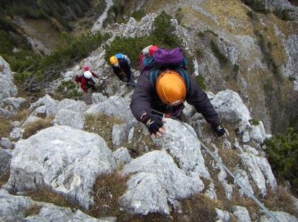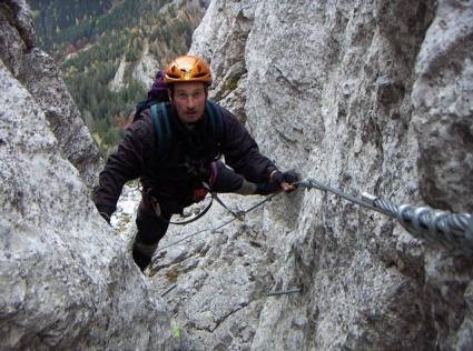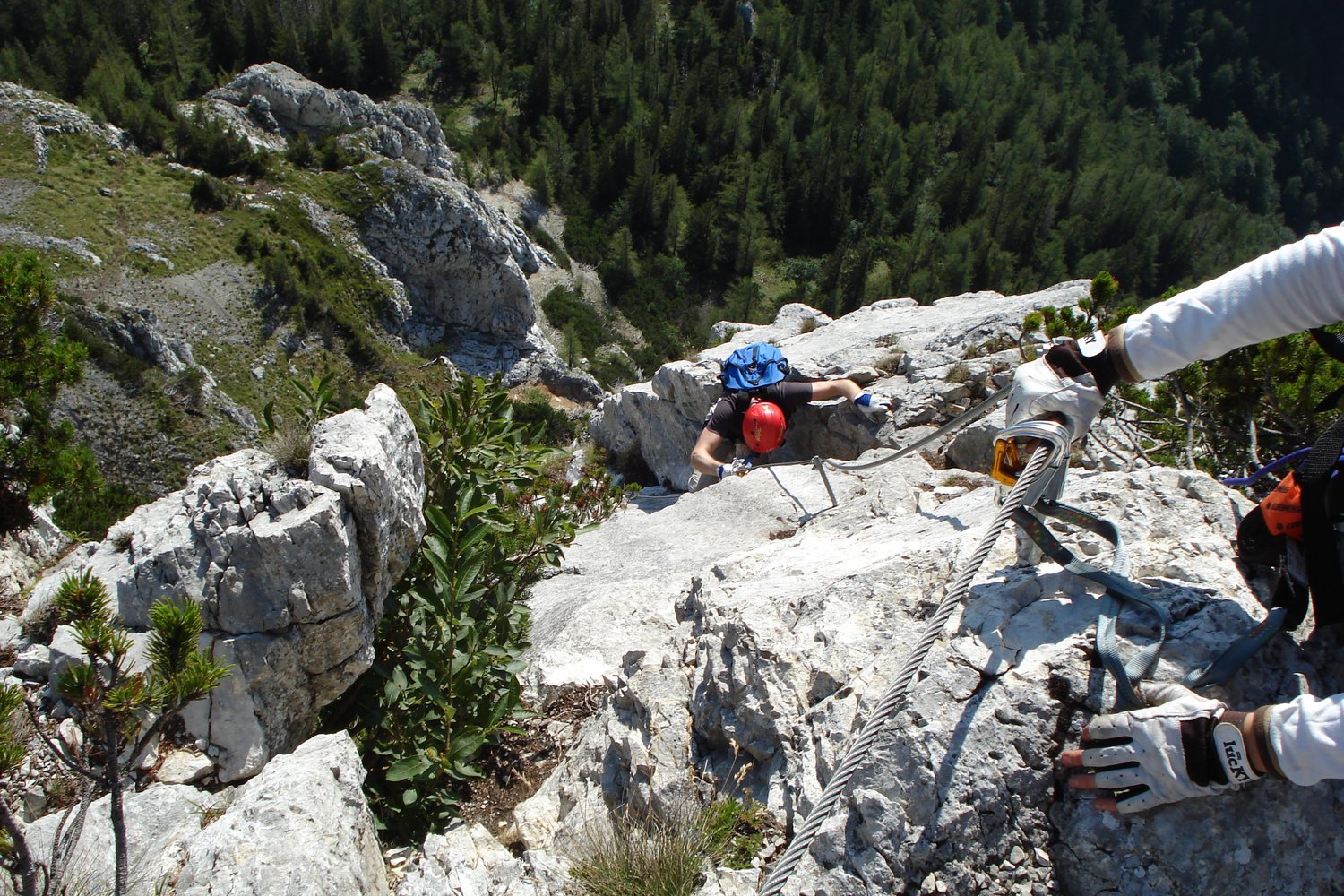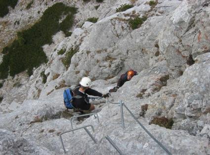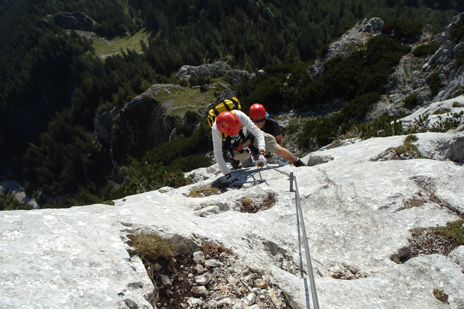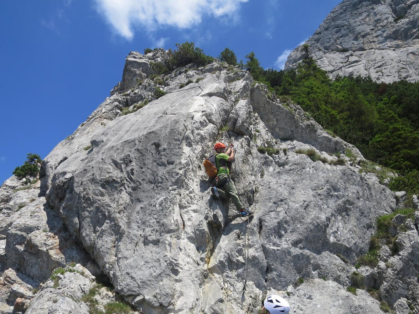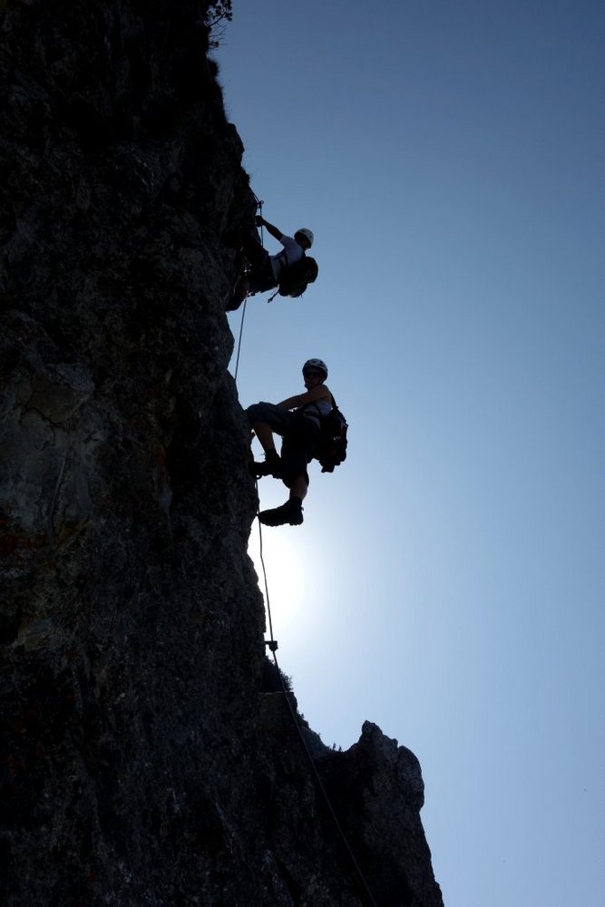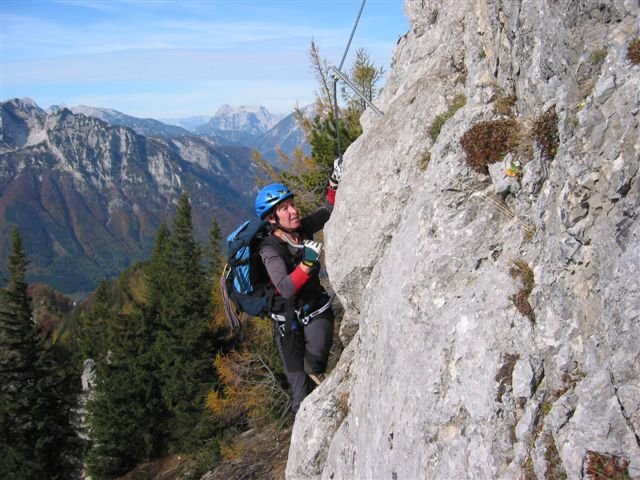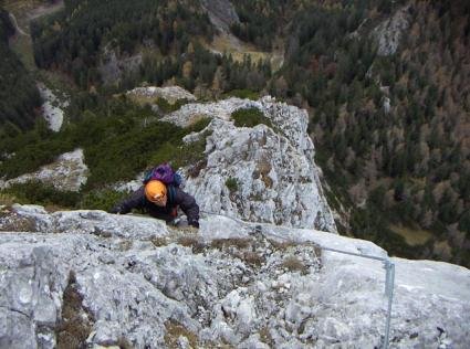 Der Klettersteig ist landschaftlich wunderschön. Ihn zu gehen macht Spaß. Die Stahlseile könnten für meinen Geschmack etwas straffer gespannt sein.,