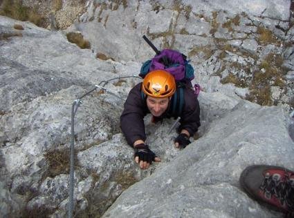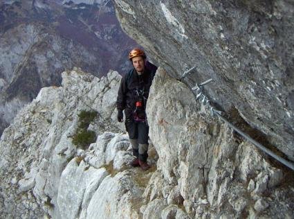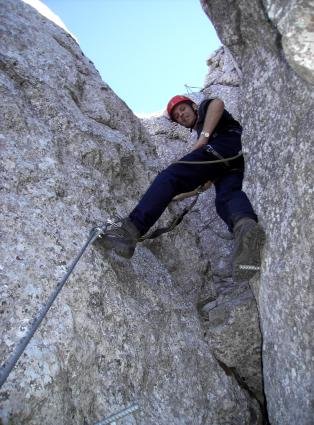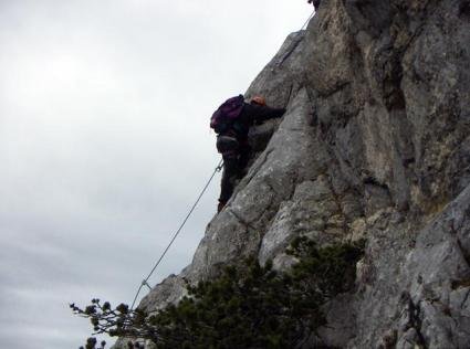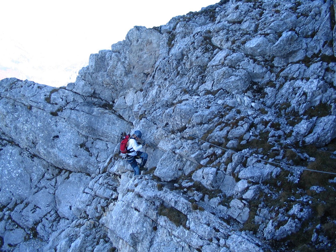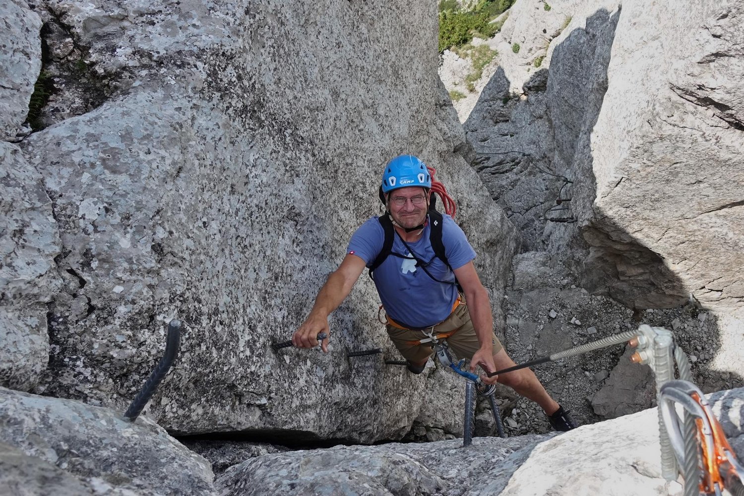Steile Platte (C) - die für uns schwierigste Stelle des Klettersteigs.,