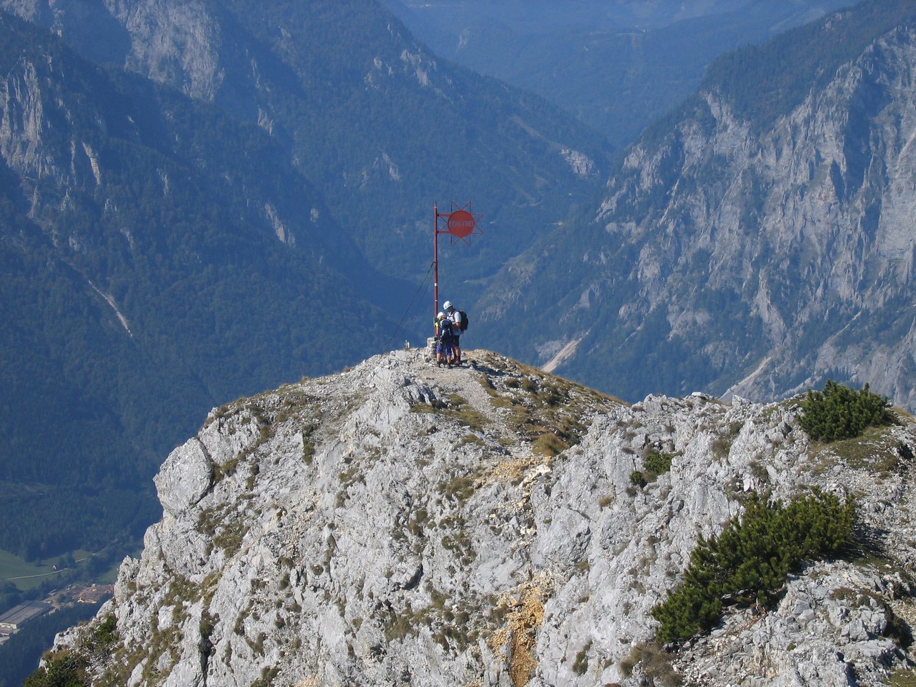 Es schadet überhaupt nicht den Helm beim Schrabacher-Abstieg aufzulassen. Es gibt hier eine ganze Menge kleinerer Rolling Stones. Der Abstieg macht entlang der Seilverischerungen Spaß, es folgt eine kleine Schotterpartie und guter Abstieg durch Wald-, Wiesenwege.,