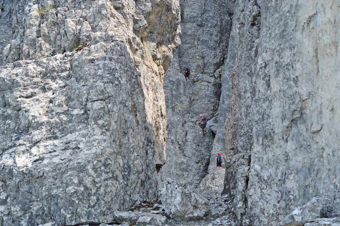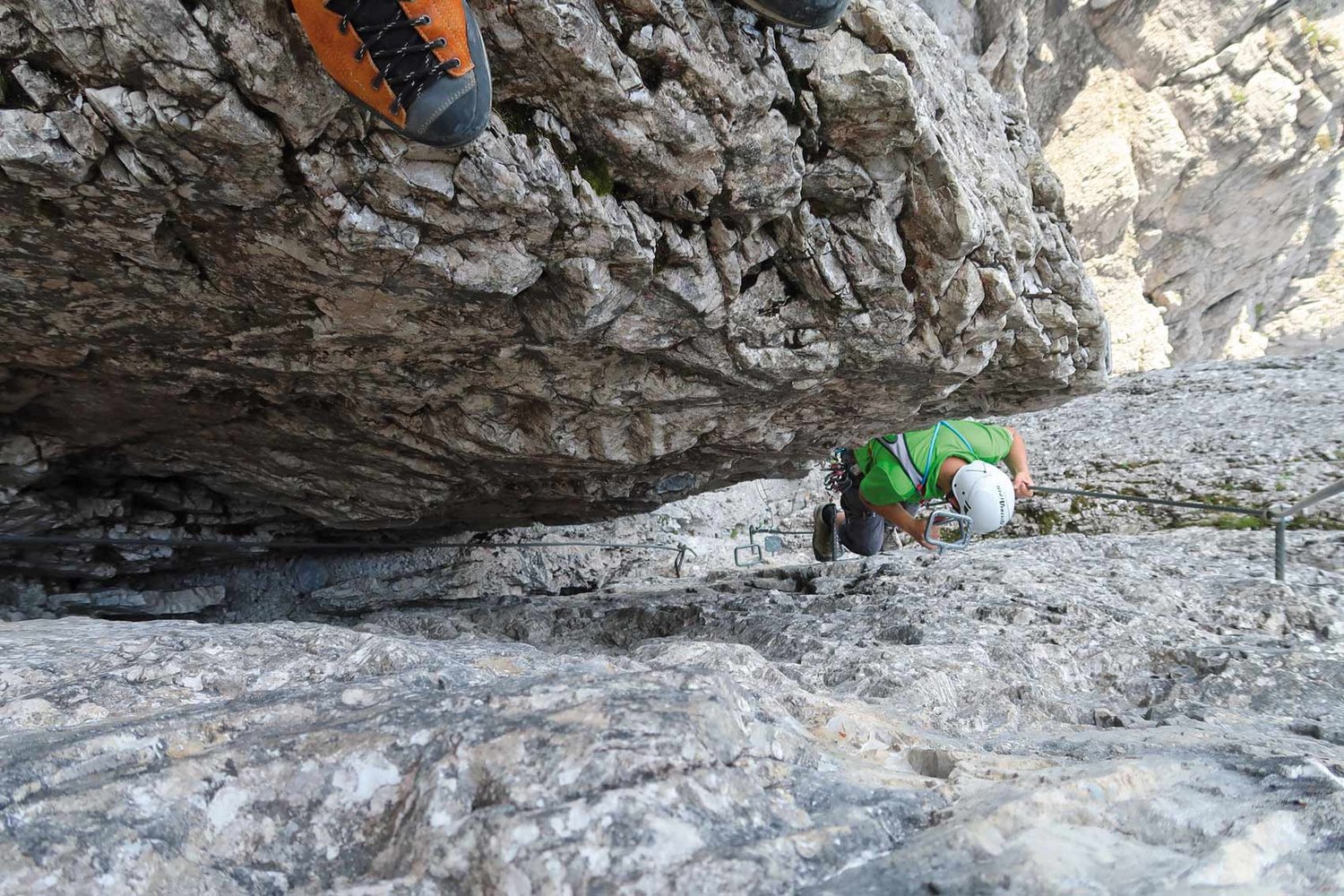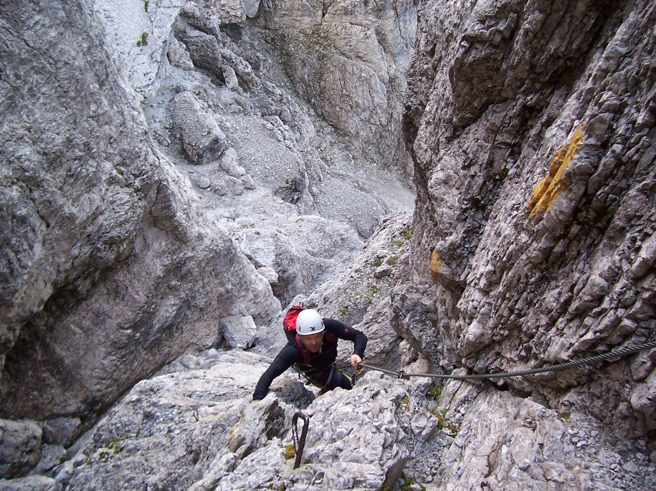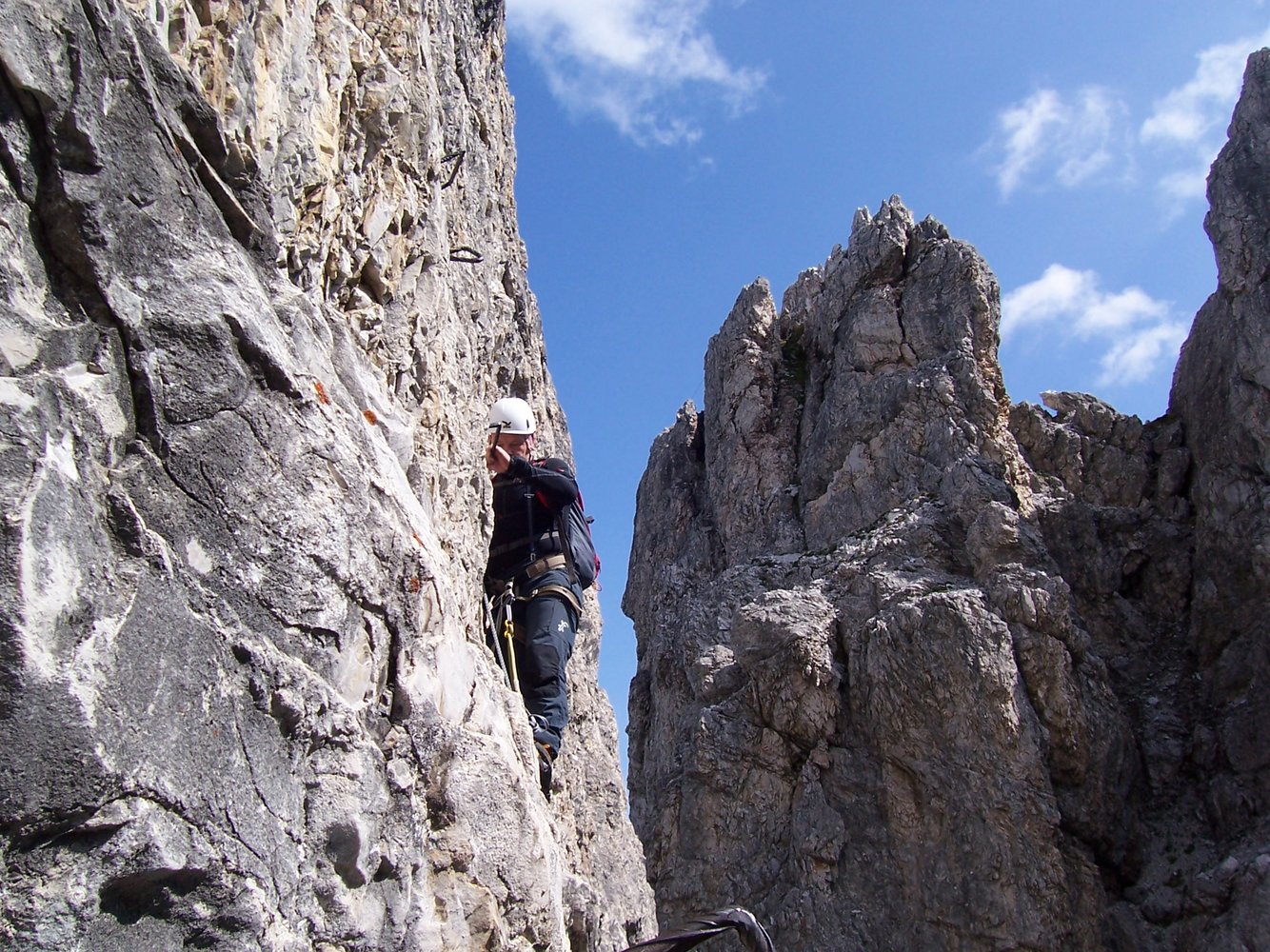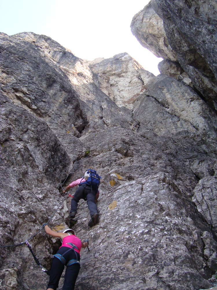 Man kann den Elfer Nordwand Klettersteig gut mit dem Elferkofel Klettersteig (C) kombinieren, zuerst an der Nordwand hinauf, dann rechts zum Einstieg des Elferkofel Klettersteige.