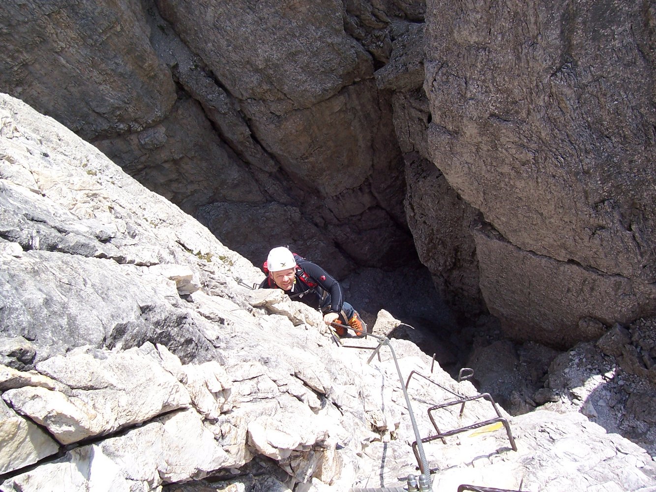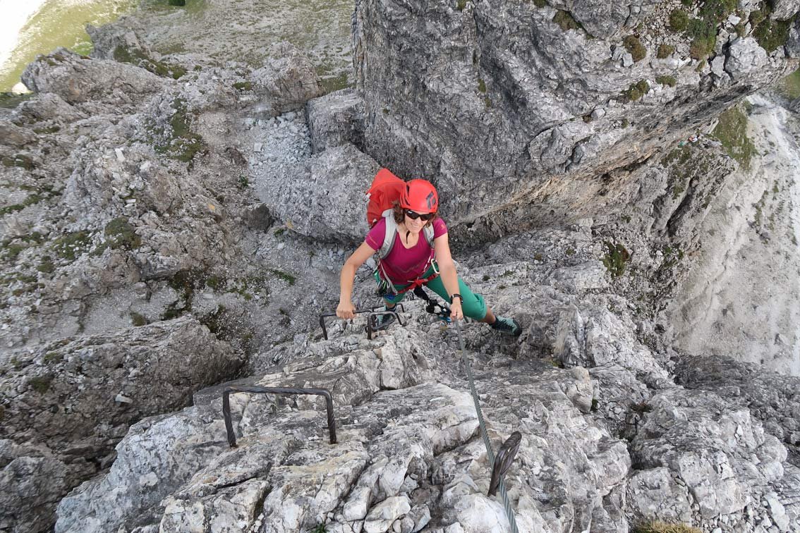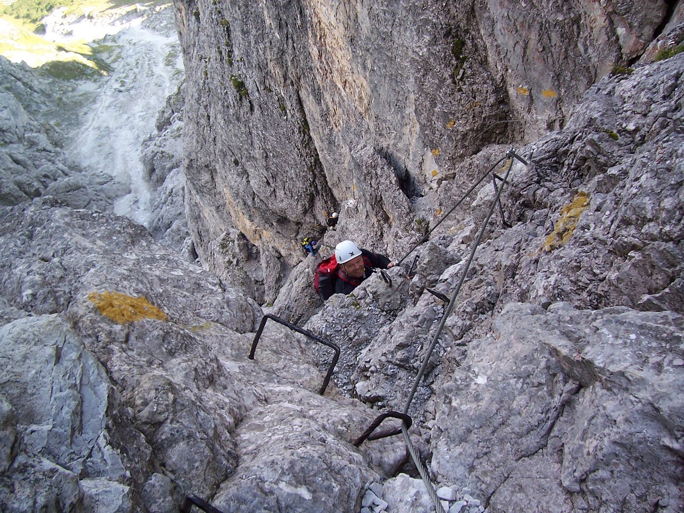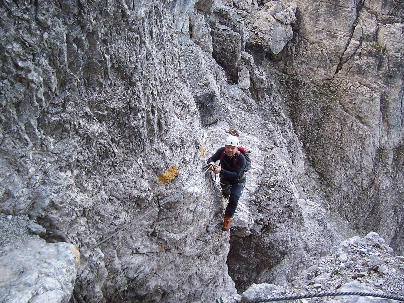 Man kann den Elfer Nordwand Klettersteig gut mit dem Elferkofel Klettersteig (C) kombinieren, zuerst an der Nordwand hinauf, dann rechts zum Einstieg des Elferkofel Klettersteige.