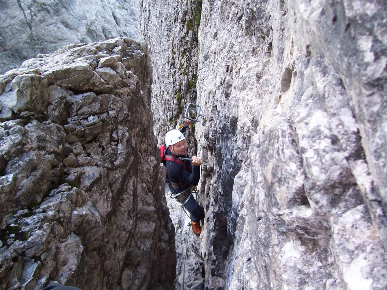 Mittelschwerer (kurze Variante schwerer) Klettersteig, der mit C/D und (Variante D) bewertet ist. Für Kinder, wenn überhaupt NUR mit Seilsicherung zu empfehlen.