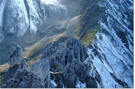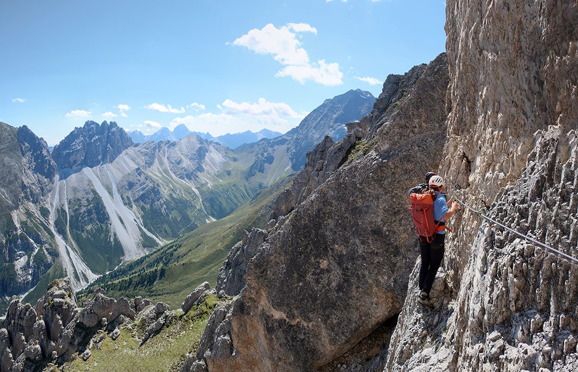 Lässt sich gut mit dem Elfer Nordwand Klettersteig (C/D) kombinieren; zuerst den Elfer Nordwand Klettersteig, dann den Elferkofel Klettersteig