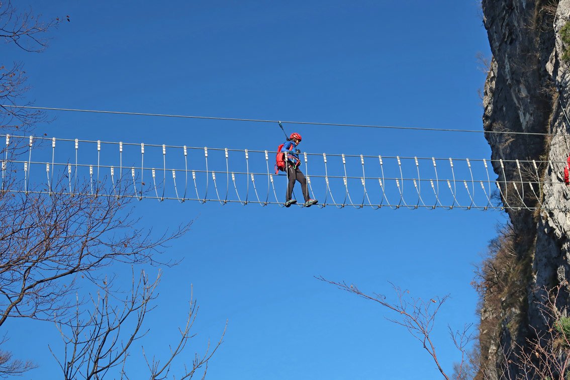 In den nach Westen ausgerichteten Felswänden oberhalb von Valbastico wurde mit der Ferrata Anelli dell Anguane ein wahres Klettersteigeldorado geschaffen, welches vor allem den Einsteiger und Genuss-Klettersteiggeher anspricht. In Runden (Ringen) kann man diverse Varinaten an der fast 200 m hohen Felswand begehen. Gesamt wurden ca. 2200 Meter Stahlseil verlegt. Schmale Bänder, eine tolle Tibetbrücke und schöne, teilweise ausgesetzte, aber nie richtig fordernde Vertikalpassagen wechseln mit gestuftem Gelände, auf dem man gut rasten kann, ab. Abseits vom Tourismusrummel um den Gardasee kann man in dieser tollen Landschaft einen wirklich schönen Klettersteigtag verbringen, danach lässt man den Tag in der kleinen Bar oder der Caverne Agriturismo Al Cucco gemütlich und sehr italienisch ausklingen. Im Jahr 2025 wurde als absolutes Highlight die Scala Grazia - eine 75 m lange Leiter gebaut, eines der längsten Ferrata Leiter in Europa! Die Initatioren haben wirklich eine tolle Klettersteiganlage geschaffen, die man sich nicht entgehen lassen sollte!