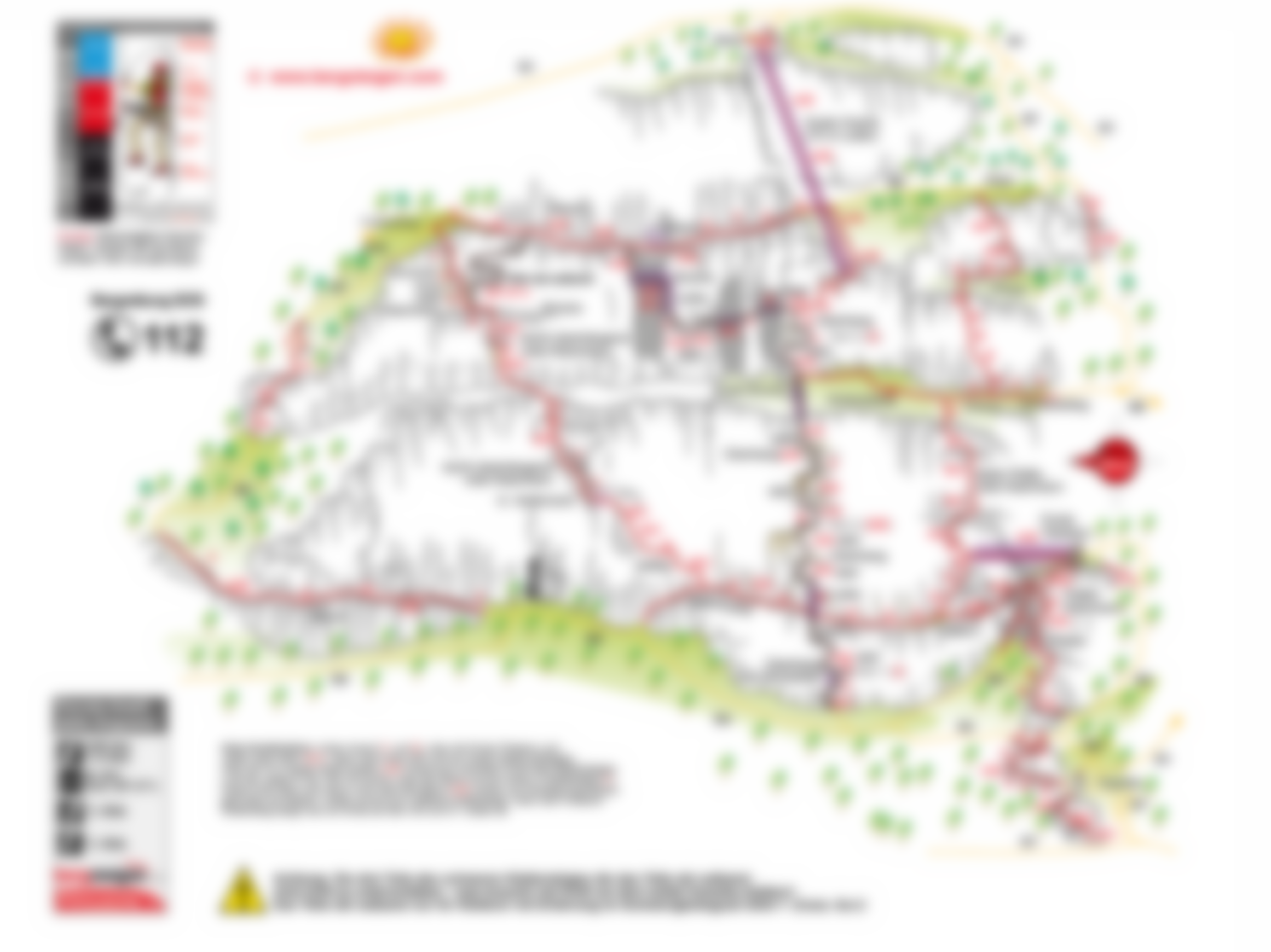 In der Regel geht man oben links auf dem S14, später auf dem S17 zurück in den Ort. Es gibt aber noch andere Abstiegsmöglichkeiten - siehe Übersichtbild.