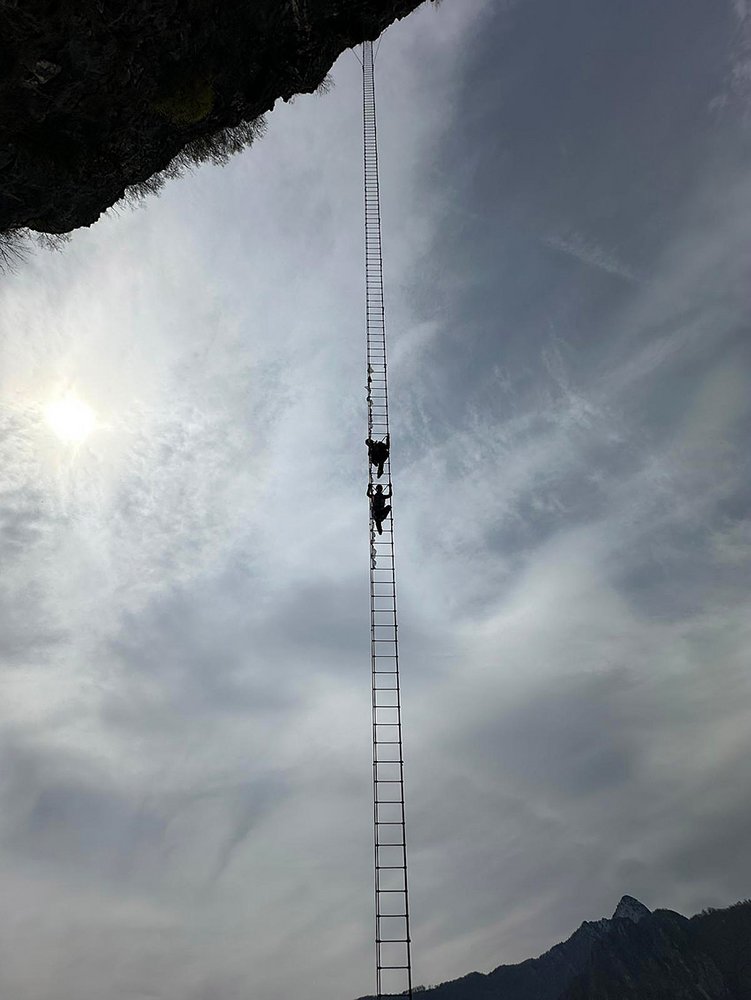 Scala Grazia (75 m): Man braucht ca. 8 Minuten für diese sehr lange Leiter, max. 3 Personen sollten auf der Leiter gleichzeitig klettern.