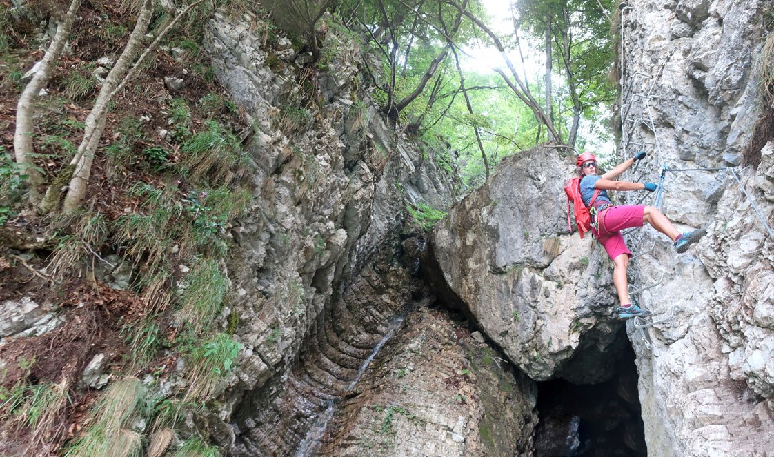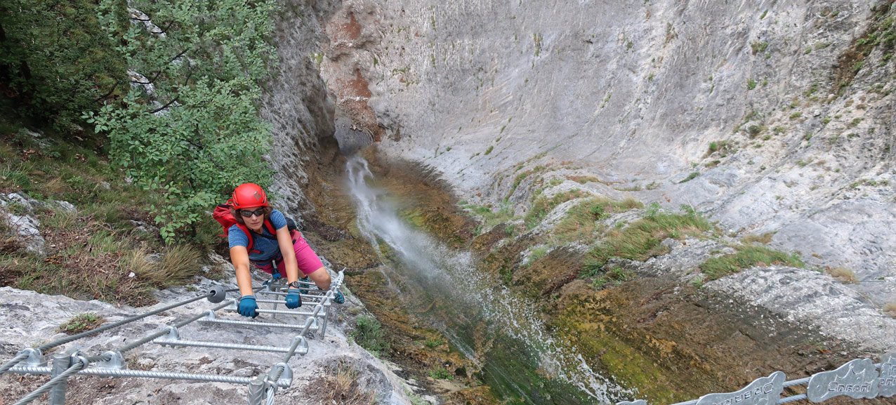 Toller Action-Klettersteig, man klettert steil und ausgesetzt im Nahbereich eines Wasserfalls! Die ursprünglich nur bis zum Aussichtspunkt (im Kessel) verlaufende Ferrata wurde im Sommer 2019 verlängert. Steile, mittelschwere, aber recht anhaltende Vertikalpassagen, oben zwei Seilbrücken und der steile Ausstieg bei einem riesigen Felsblock. Wirklich ein sehr schöner Klettersteig, der das Ferrata-Angebot um den Gardasee perfekt bereichert!
