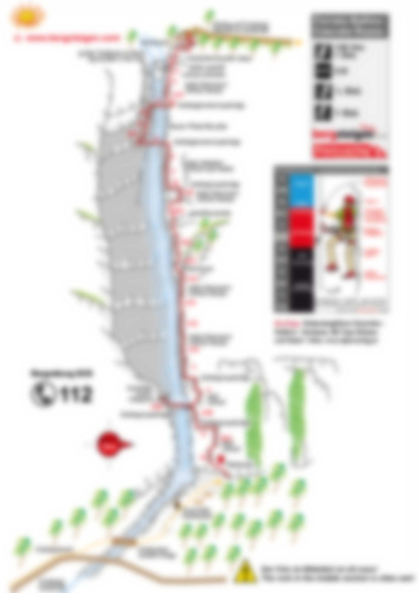 Sehr viele, teilweise ausgesetzte C/D-Passagen, die für Einsteiger auch zur konditionellen Belastung werden können. Der untere Teil bis zum Aussichtspunkt im Kessel ist B/C.