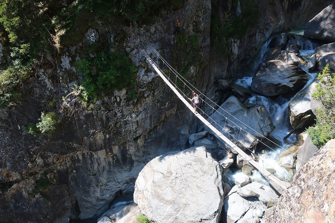 Bei viel Wasser kann es auf den letzten beiden Seilbrücken feucht werden - bei Hochwasser (Hochwassergefahr) sollte man diese Ferrata meiden.