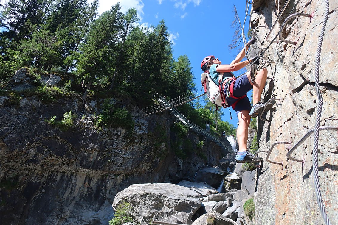 Über fünf Brücken musst du gehen - so könnte man die Ferrata Cascade de Berard kurz auf den Punkt bringen. Man ist dabei immer oberhalb eines tosenden Wildbaches unterwegs und kommt final einem Wasserfall gefährlich nahe, dieser Umstand macht diesen Klettersteig zu einer wirklich gelungenen Ferratatour! Wer Zeit und Lust hat, kann die Ferrata mit einer Wanderung in das malerische Reserve naturelle du vallon de Berad verbinden, der Wanderweg führt sogar bis auf den 3096 Meter hohen Mont Buet hinauf.