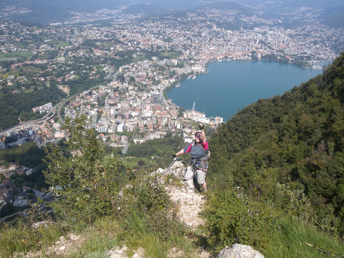 Eine knackige Nordwand-Ferrata hoch über dem Luganosee! Von „schwerster Klettersteig der Schweiz“ und von „K5+“ war die Rede. Schon unter dem Einstieg stehend denkt man sich - die Wand schaut gar nicht so schwer aus. Genau so ist es dann auch, kurze knackige Vertikalpassagen wechseln mit leichten Verschnaufmetern ab. Der Gipfel des San Salvatore ist aber nicht nur Anziehungspunkt für Pilger (Hospiz der Erzbruderschaft) und Klettersteiggehern, sondern auch ein gewaltiger Blitzmagnet und daher seit Jahren Standort der Blitzforschung. Die Blitze werden jetzt von den dicken Stahlseilen des Klettersteiges angezogen, es ist daher ratsam, bei herannahendem Gewitter den Steig schleunigst zu verlassen.