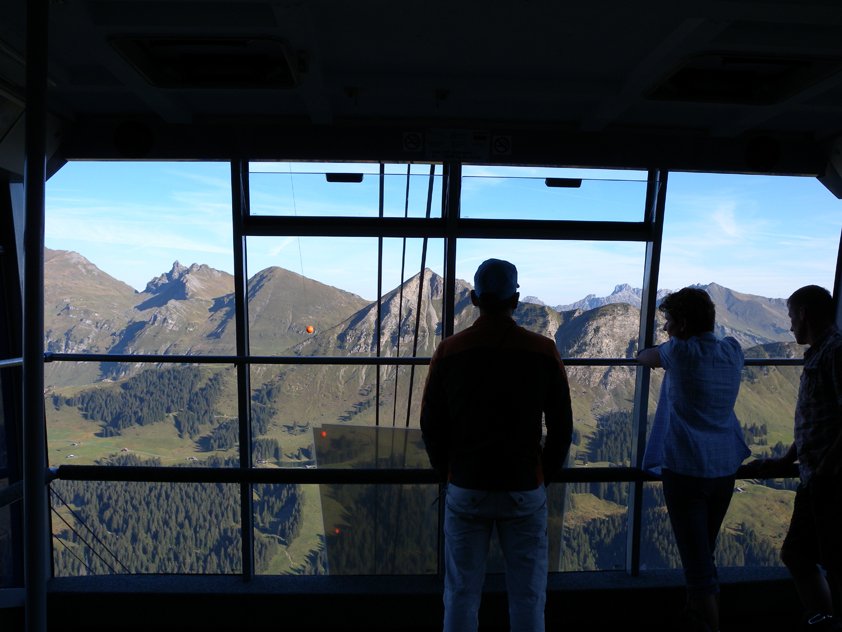 Beim Ausstieg nicht direkt zur Seilbahn aufsteigen, sondern über Wiesen waagrecht nach Süden, bis man auf einen Weg gelangt, welcher zur Cabane des Diablerets führt. Von der kleinen Hütte in wenigen Schritten zur Mittelstation oder in 1½ - 2 Std. auf dem Zustiegsweg und dem beim Einstieg abzweigenden Talweg zum Col du Pillon absteigen.