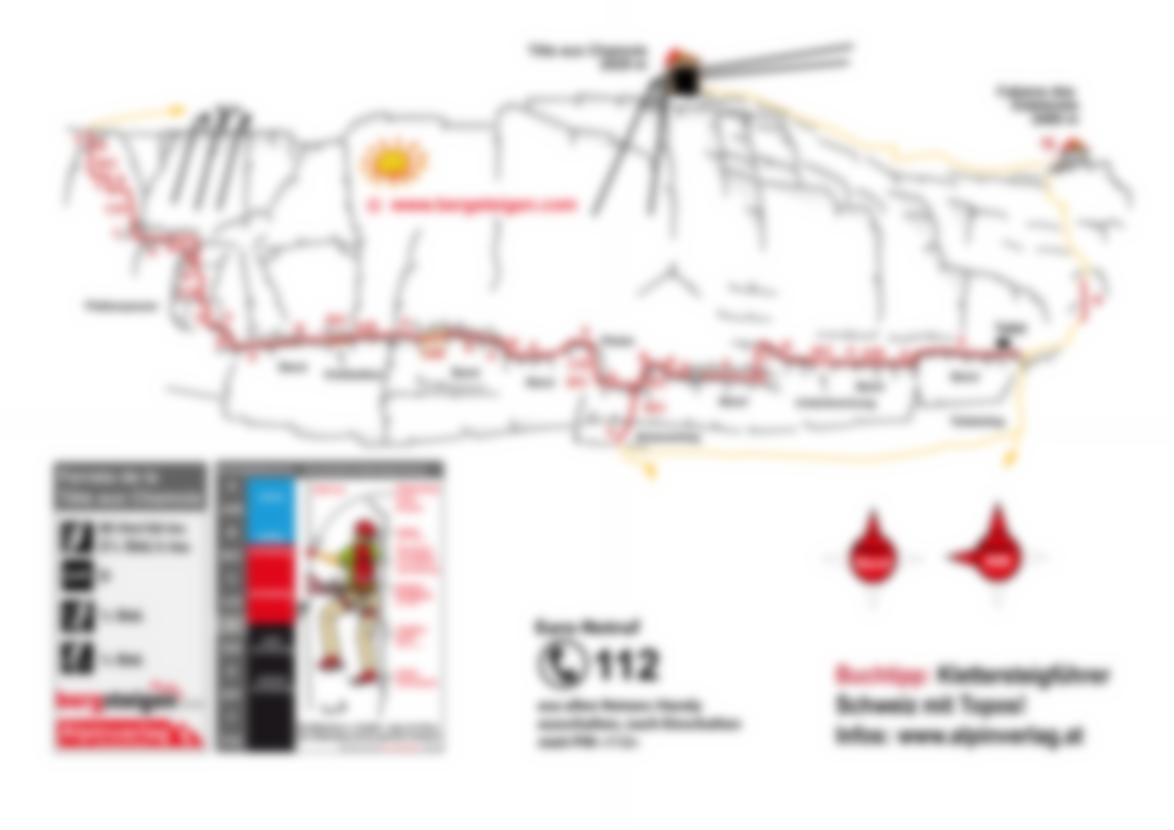 Komplette Klettersteigausrüstung, Helm und Klettersteighandschuhe, für Schwächere evtl. ein Sicherungsseil.