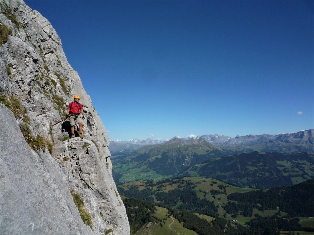 Eins, zwei, drei – Rougemont – die drei kurzen Klettersteige findet man in der Literatur oder den unendlichen Weiten des www auch unter Via ferrata Rougemont oder einfach nur Via ferrata le Rubli. Die Steige bieten nahezu die gesamte Schwierigkeitspalette und sind damit ein willkommenes Ziel für Anfänger und Fortgeschrittene. Die perfekte Verbindung mit der Videmanette Seilbahn lädt dazu ein, den Rubli in Form eines sonnigen Nachmittagsspaziergangs zu bezwingen. Voie 1 (Deutsch: Weg 1), der leichteste Weg auf den Rubli ist für Einsteiger und als Abstieg gedacht. Voie 2 zweigt nach dem ersten Drittel ab und schwingt sich über steile Platten und den Südostgrat hinauf zum Westgrat. In der senkrechten Westwand verläuft der extremste Anstieg (Voie 3), konstant steil und schwer.